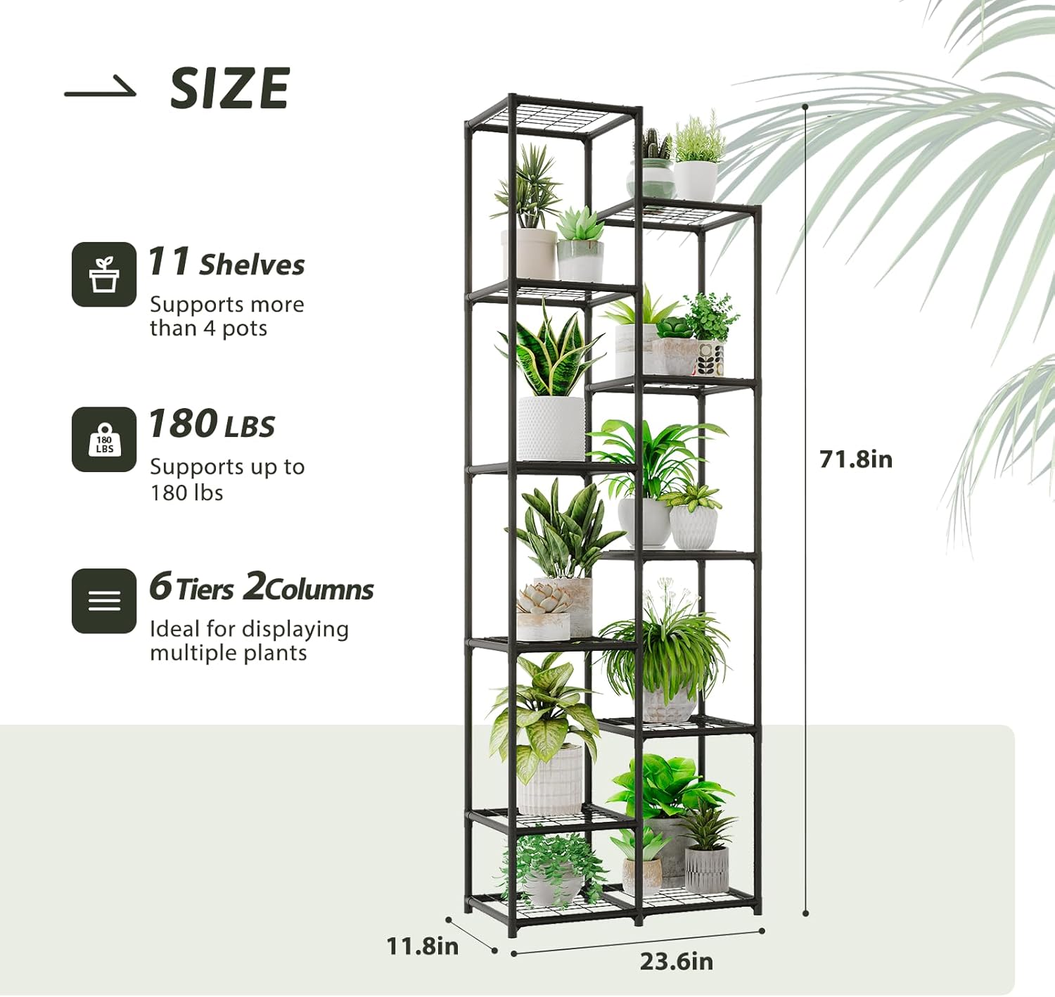 Tall Plant Stand Indoor Corner Plant Shelf Metal Plant Rack Plant Holder Flower Pot Stand for Multiple Plants for Living Room Patio Balcony Garden Porch Black