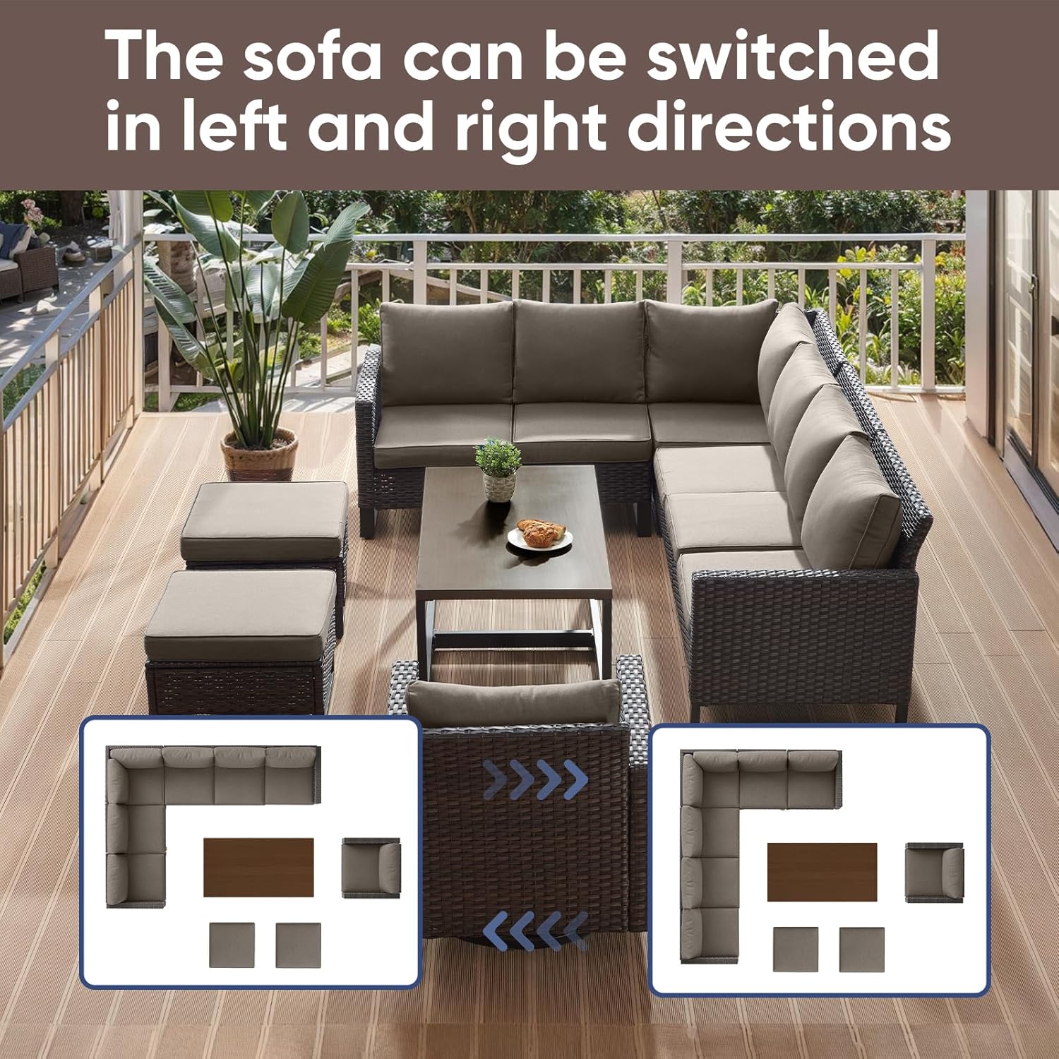 - 【Sturdy&Durable】Crafted with interior Anti-Rust powder-coated steel frame and wrapped in All-weather Hand-Woven PE wicker that make this sectional sofa set sturdy and durable,UV and Weather resistant,The upgrated rectangle feet of couch and table which add more stability.