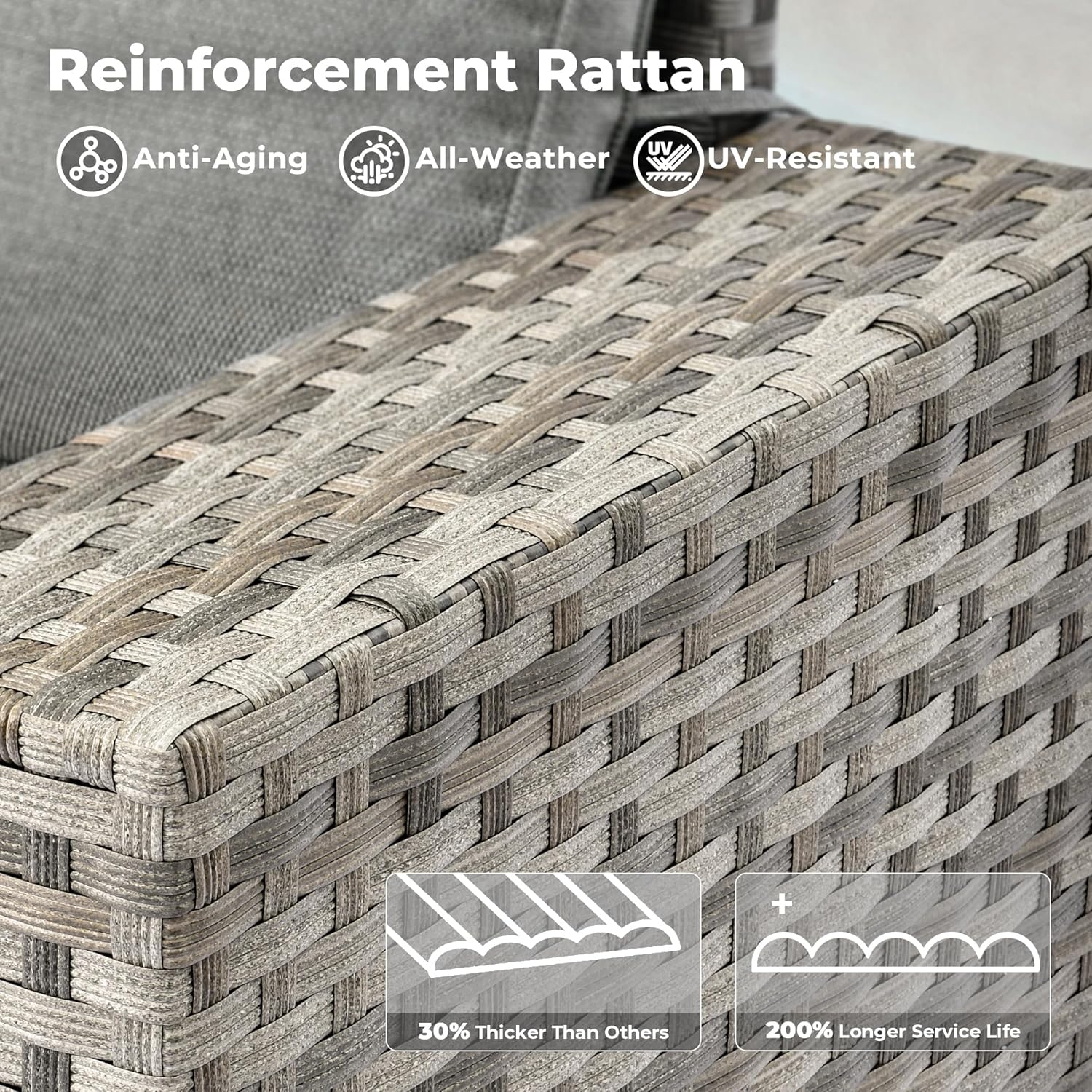 - All-weather Wicker Rattan: Our outdoor sofa sets have very durable wicker rattan for all-weather use and a natural texture with good coloring. The high-quality patio seating made of powder coated steel frame ensures good strength and stability.