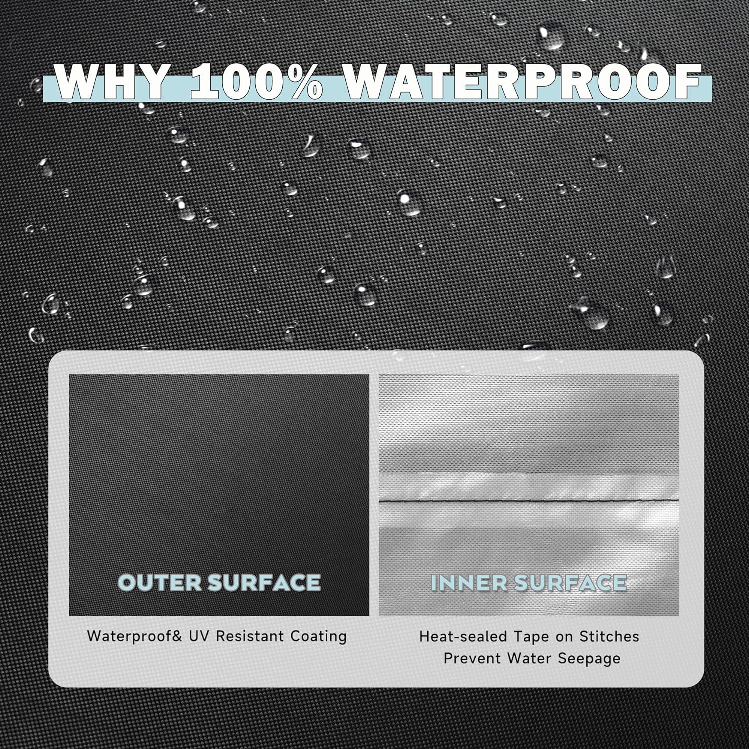 - WATERPROOF & ANTI-UV – Waterproof outer coating and heat-sealed tape on stitches prevent water seepage. Inner PU coating layer protects your bbq table from damage caused by prolonged sun exposure.