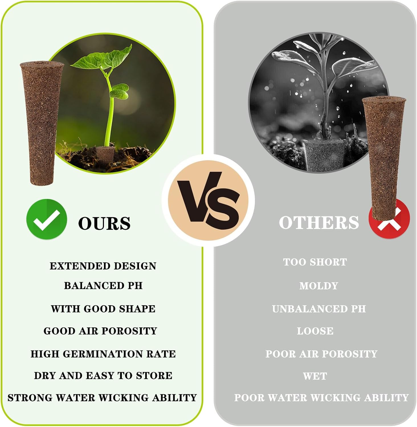 - Superior Growing Medium: Our grow sponges are crafted from 100% biochar cotton, known for its enhanced fertility, which supports robust plant growth. Compared to conventional seedling soil, these grow sponges maintain a balanced pH and offer excellent water absorption and moisture retention. This provides the ideal environment for seeds to germinate and roots to establish, while ensuring a mess-free, soil-free indoor growing experience throughout the year.