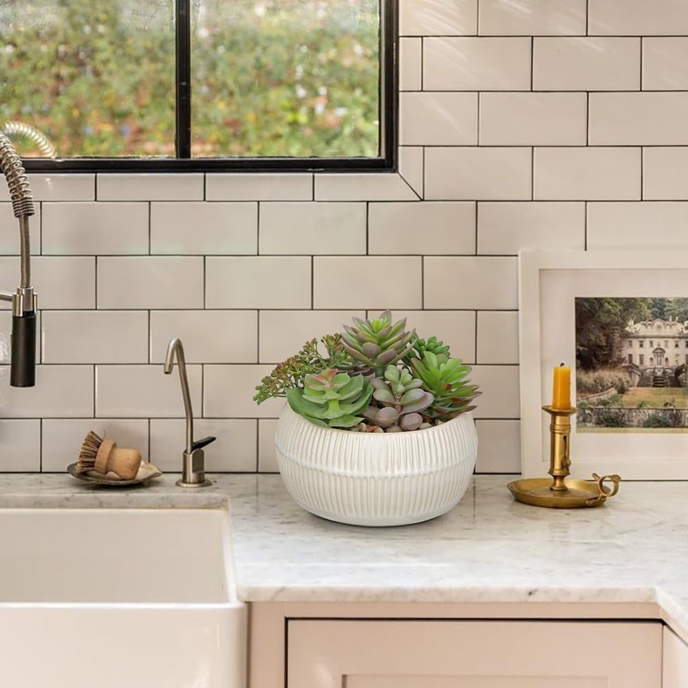 - Versatile House Plant Decor: Measuring 5.5" tall overall with a 3.1" height and 5.5" diameter ceramic pot, this compact faux succulent fits perfectly on office desks, bathroom counters, and bookshelves. The ceramic pot provides stability while staying space-conscious - ideal for apartments, dorm rooms, or as a charming kitchen windowsill accent