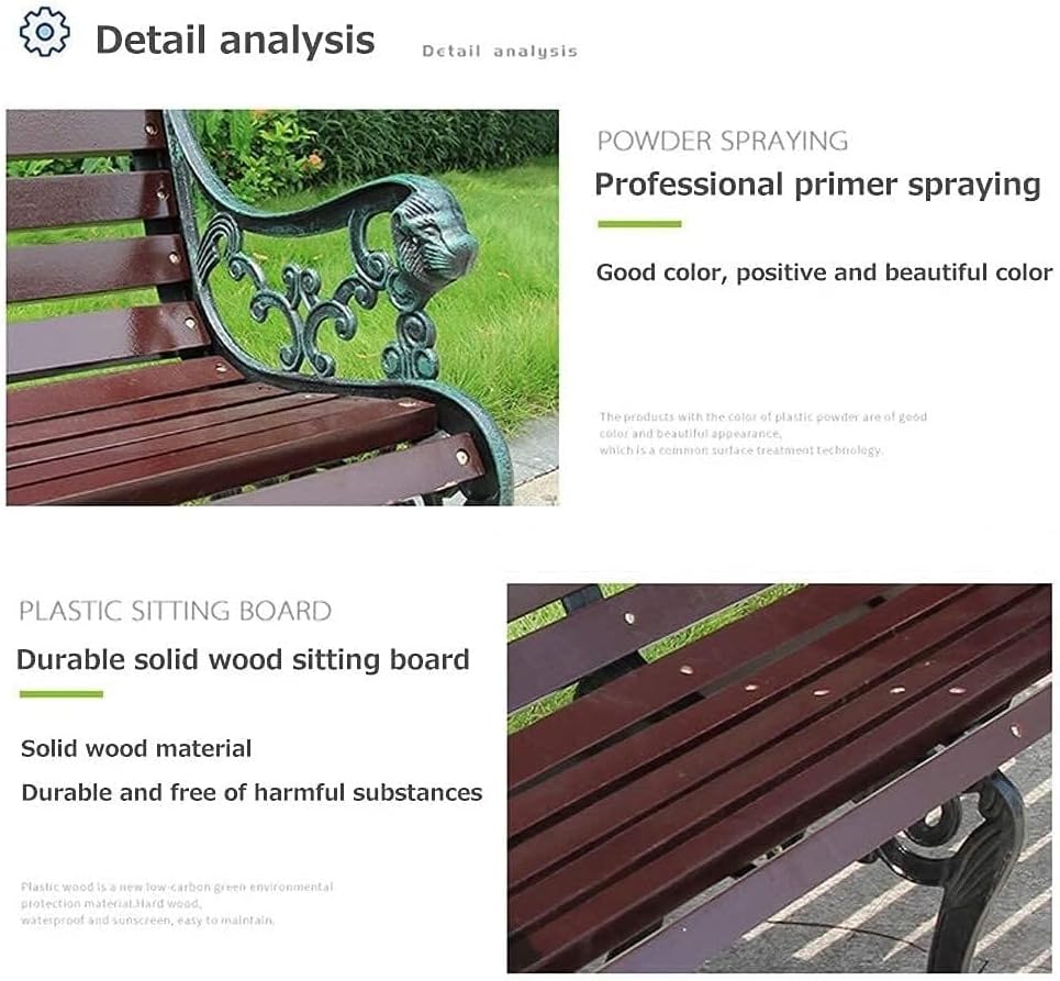 Outdoor Solid Wood Garden Park Bench for 2-3 People, Weatherproof Patio Lawn Bench Porch Seat with Cast Iron Frame, Porch/Deck/Patio Furniture Bench with Backrest and Armrests(Brown+Antique Green Legs