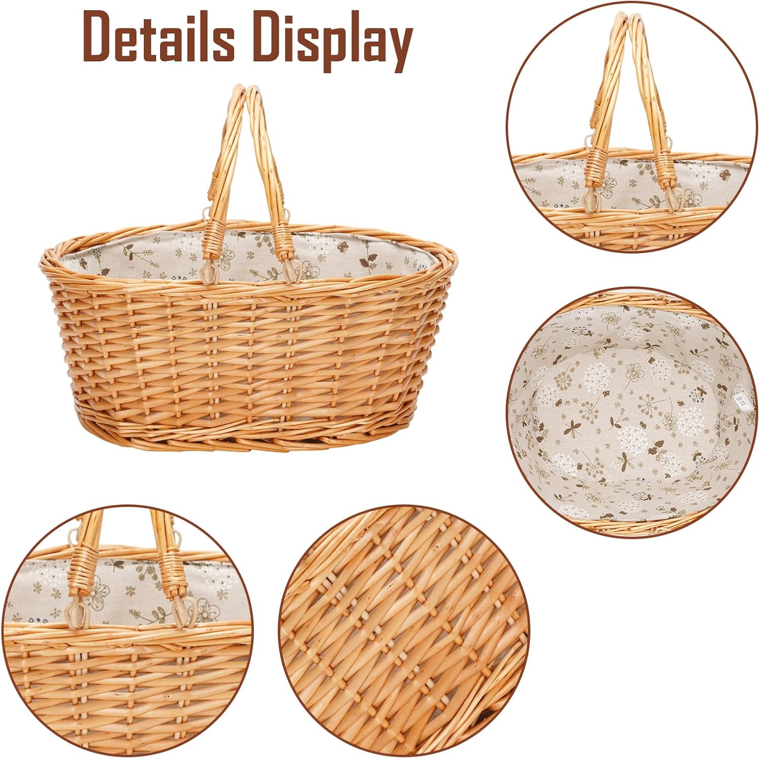 - Handwoven Basket: The basket is made of durable natural willow by hand-woven, eco-friendly, safe and durable for long time.