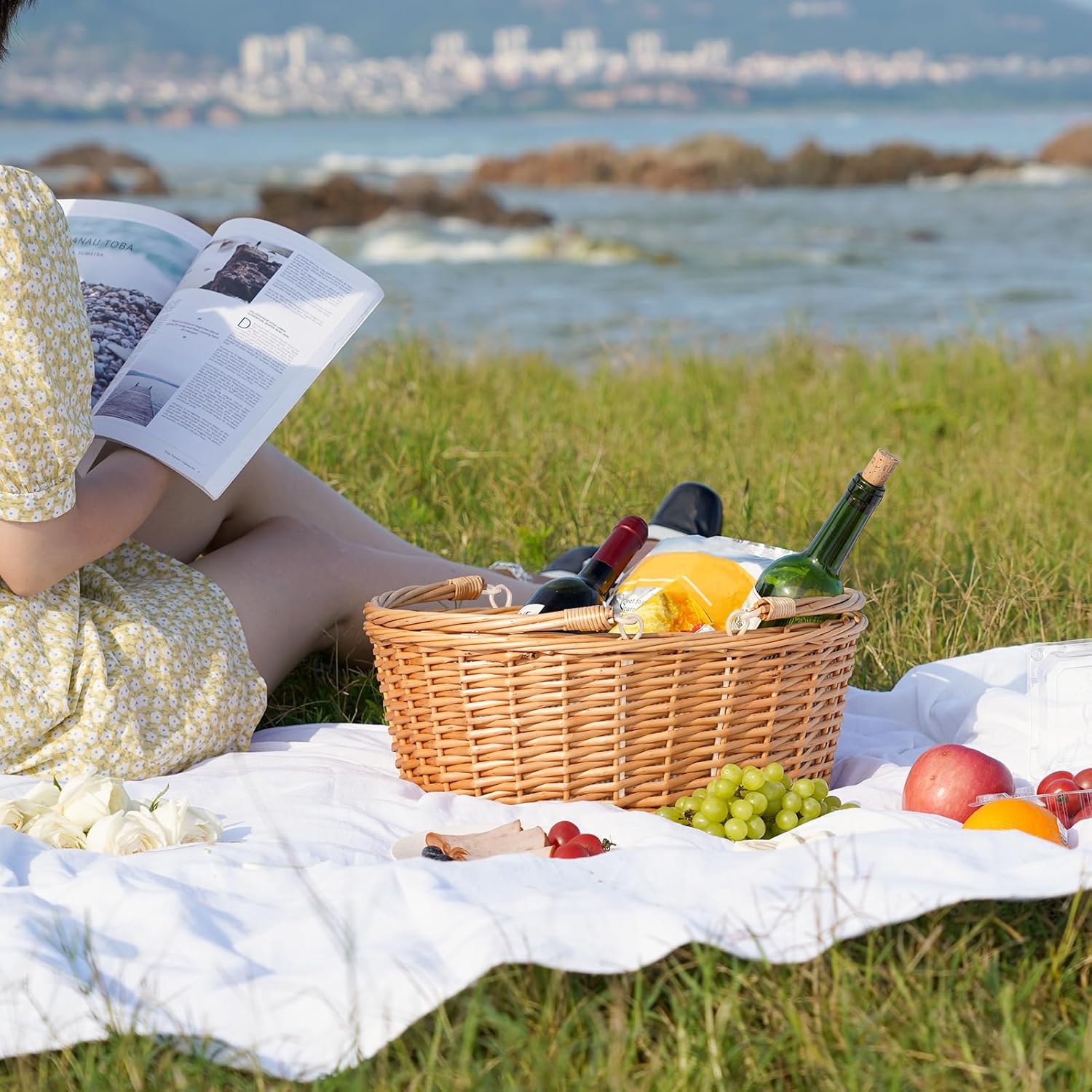 - Multi-functional Basket: The basket more than just the picnic basket. Also a storage of Easter eggs and candy, wine, fruit, toy. Bathroom storage basket. Willow Hamper Storage for Outdoors, Travel, Shopping, Camping.Meet your decoration and daily storage needs