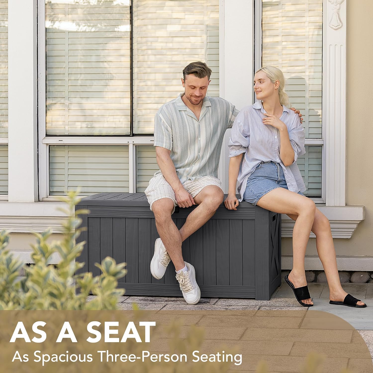 - Attention to Detail: Reinforcements on the sides and hydraulic hinge ensure stability and safety, while the patio storage box can also be used as an extra large bench for three