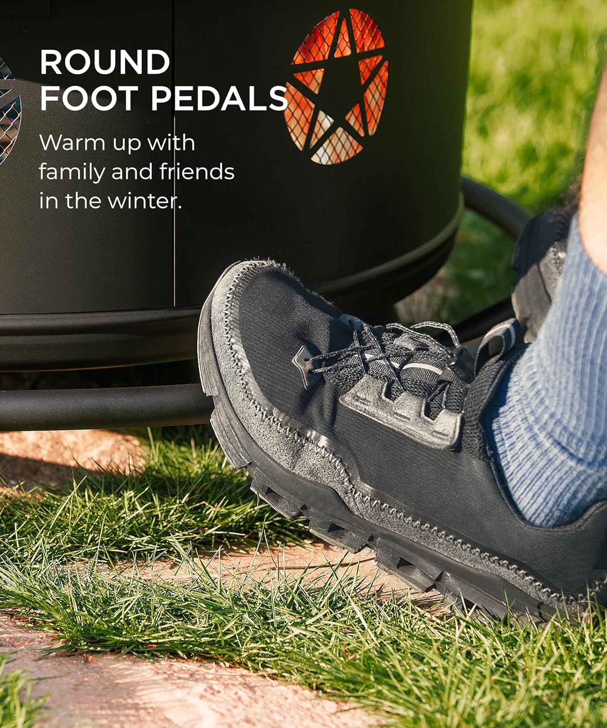 - 【MODERN & HUMANIZED DESIGN】The fire pit table comes with 1 height-adjustable 360° swivel grills which disassemble freely. You can barbecue, keep food warm or put pan to cook on them. The side of wood-burning fire pit is created with charming pentagram cut-out design which catches firelight for creating fun shadows. The drilled design promotes airflow and keeps the fire strong.