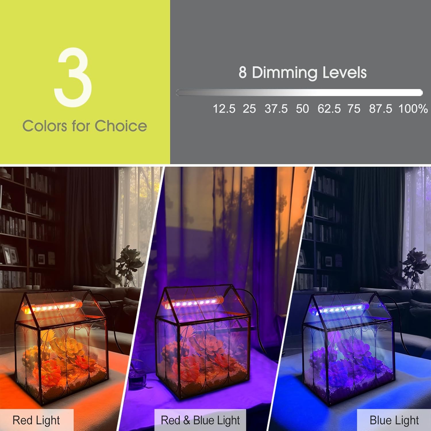 - Plant Terrarium Kit with Grow Light: With 5W grow light (5V Low Safe Voltage) equipped with 8 Red and 8 Blue LEDs, greatly promotes indoor growth as it accelerates photosynthesis, especially when the plant needs extra light when raining,snowing,dark indoor and so on, will give your plants considerate care (notice: without plants)
