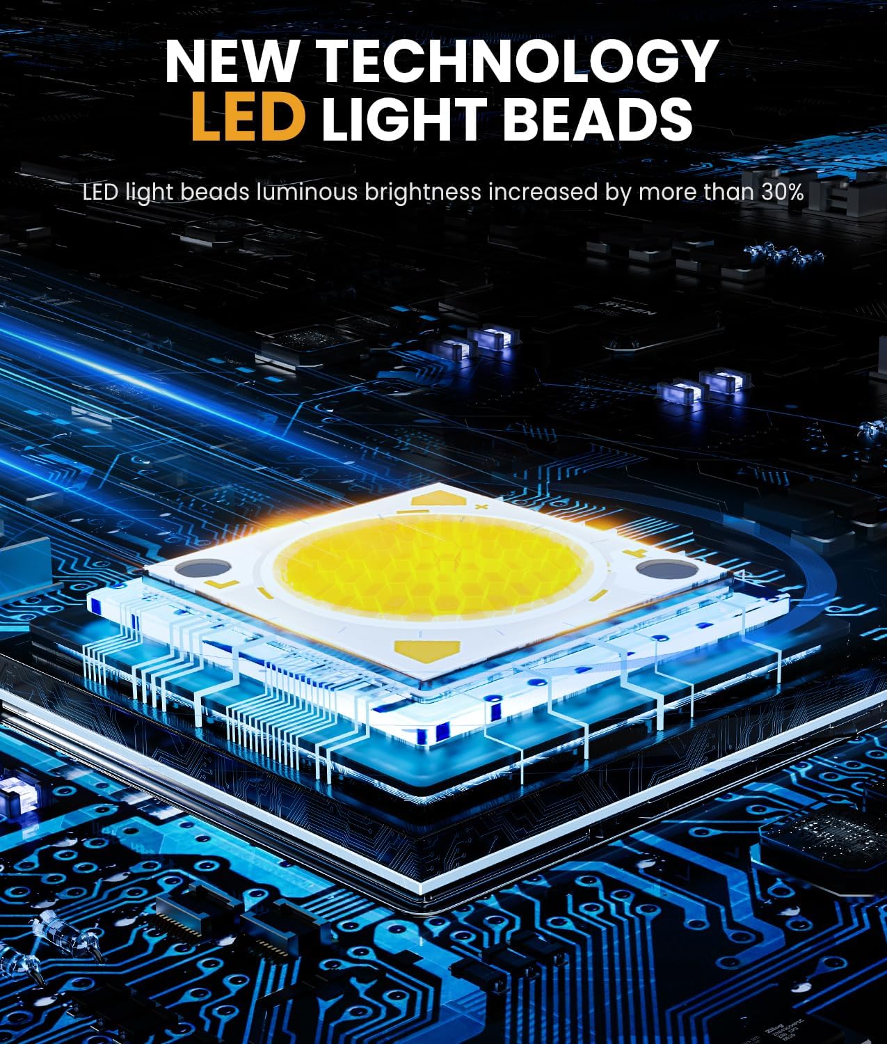 - 58 NEW TECHNOLOGY LED BEADS: The solar flood lights adopts new technology LED beads, the luminous efficiency of LED beads can reach 130lm/W, the luminous brightness is increased by more than 30%. 58pcs LED beads use zoned dense arrangement design, so that the solar light has more light focusing points, larger irradiation range, longer and brighter illumination distance.