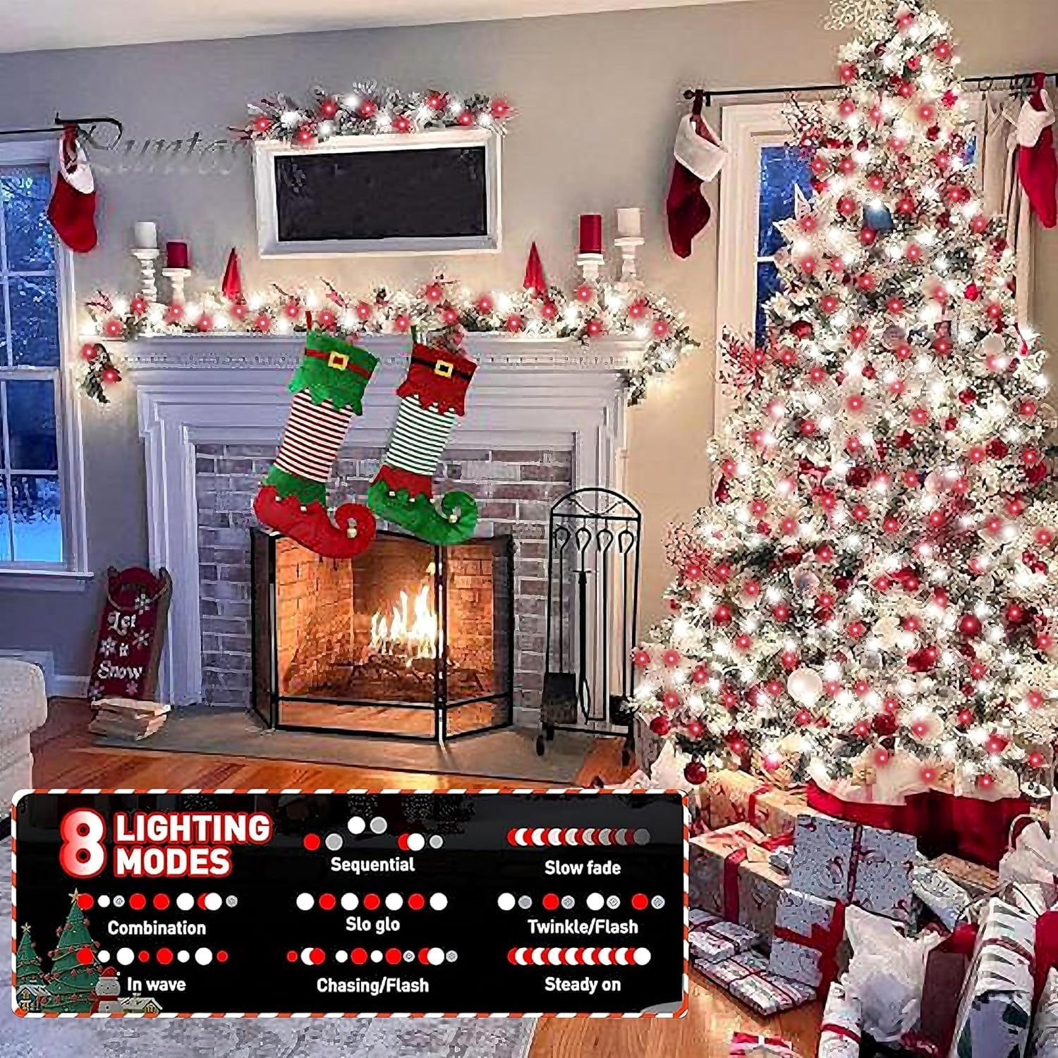 - 8 Lighting Modes Solar Christmas Lights: Red&White solar christmas lights outdoor are 8 different settings on the back of the solar panel to creates a dreamy feeling and your garden looks like a enchant fairy land at night. Red&White christmas lights are an amazing addition to your yard, create a pleasant mood for events, parties or weddings