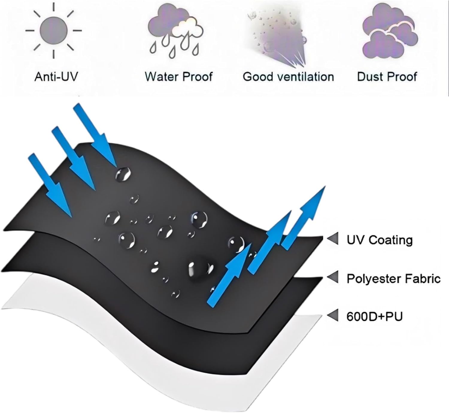 - DURABLE MATERIAL - Made of 600D heavy duty waterproof, tear-resistant oxford fabric with a waterproof cover. Effective against sunlight and bad weather.