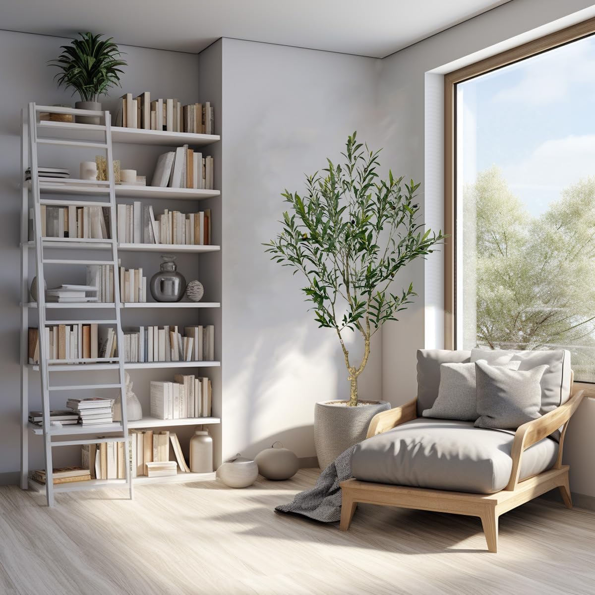 - 4. The olive tree is made of eco-friendly PE fabric and sturdy wire inside, no smell and no watering required. It will not fade when placed indoors and is baby and pet safe.