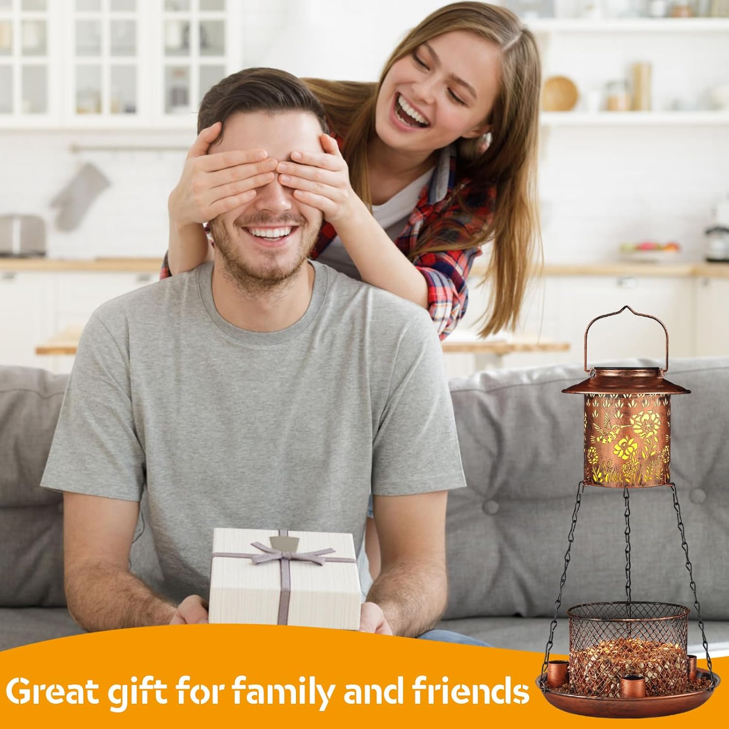 Hummingbird Solar Bird Feeder for Outdoor Hanging Gifts for Women Mom Grandma Metal Wild Birdfeeder Garden Lantern Decor Lanterns Outside for Yard, Patio, Lawn, Pathway, Landscape