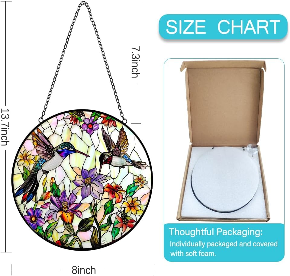 - Excellent and Satisfactory Support: Stained glass hummingbird window hangings suncatcher is packaged separately and covered with soft foam to ensure transportation safety. Reach out to us if you face any issues, and we'll promptly address your concerns with a satisfactory resolution. Packaged with care, please shop with confidence knowing you're backed by our commitment to excellence