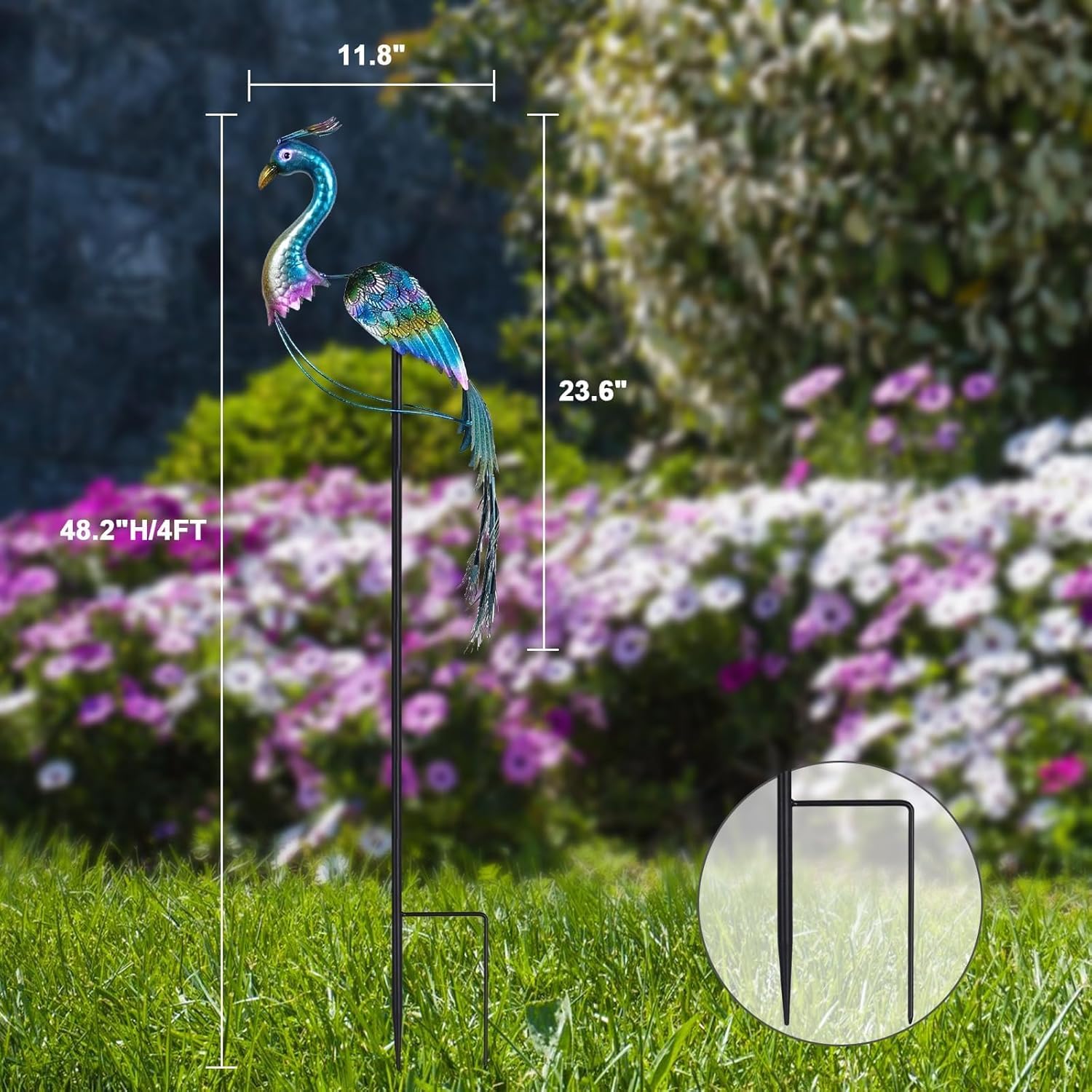 - 【Bright Up Your Garden】This elegant metal peacock garden stake will add the perfect charm to your garden decor, raised yard or landscape beds. The shiny blue and green body with splashes of pink on the tail brings a rich blue color scheme to your garden, guests in your garden won't be able to miss these beautiful and unique metal garden stakes!
