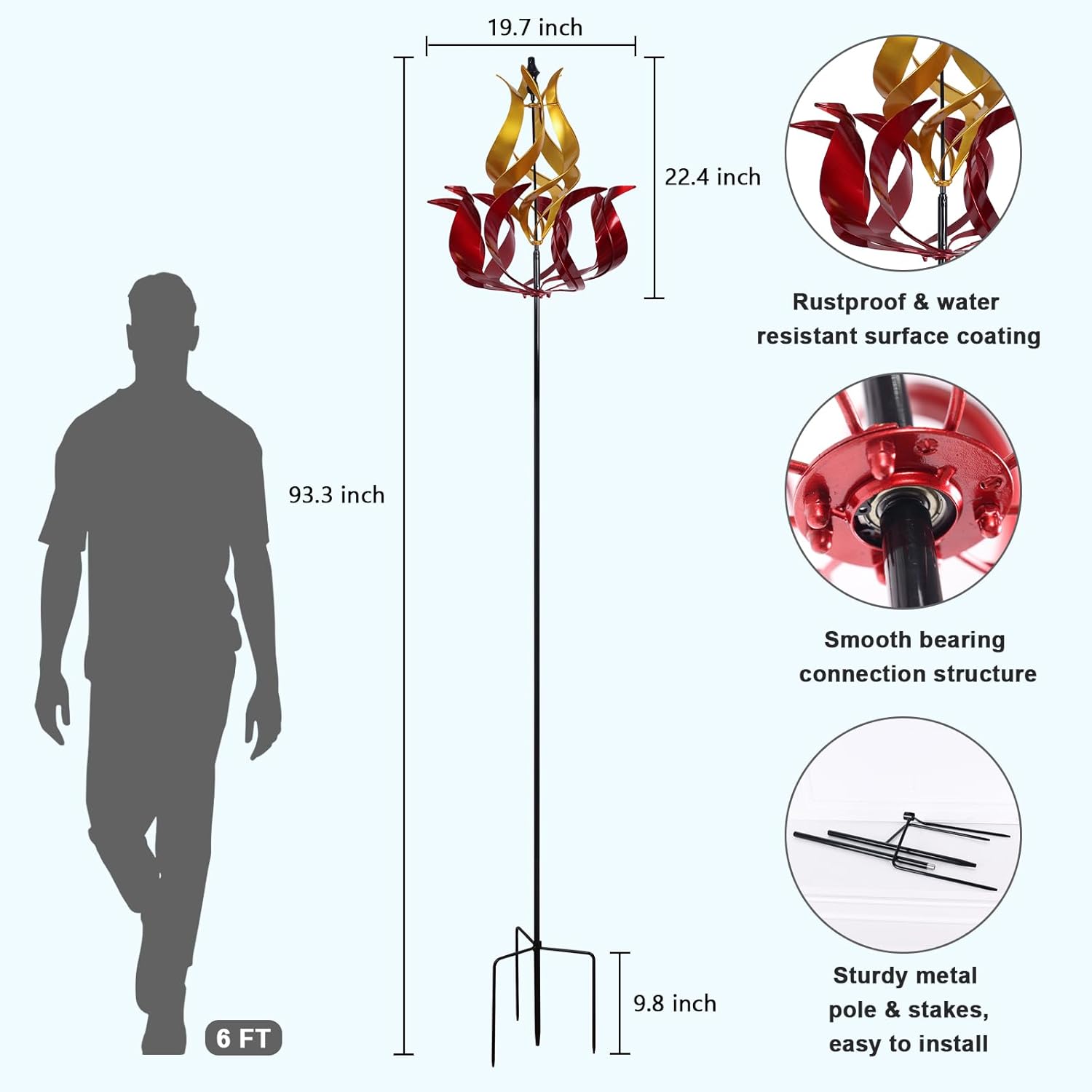 - âď¸ăALL-WEATHER ENJOYMENTăMade from high-quality metal with weather-resistant finishes, our outdoor wind spinner is built to withstand rain, snow, and harsh sun without fading or rusting. Designed with ease of use in mind, the wind spinner is simple to assemble, enjoy its charm season after season.