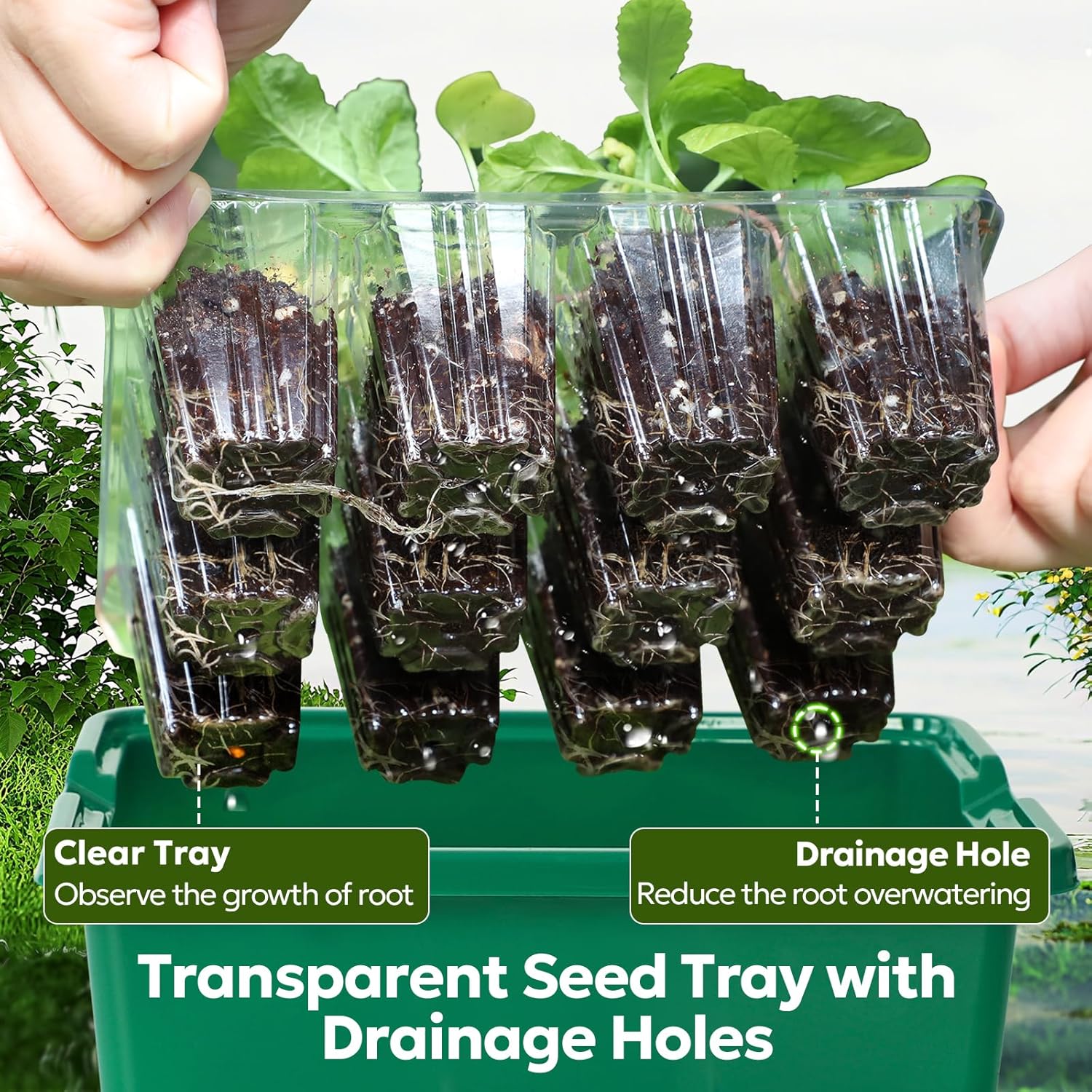 - 【Drainage System to Prevent Overwatering】Each cell measures 1.5x1.5x2IN (WxDxH) and features drainage holes at the bottom to ensure proper water flow, preventing root rot and overwatering. This helps your plants get balanced moisture and healthy root development, allowing them to thrive.