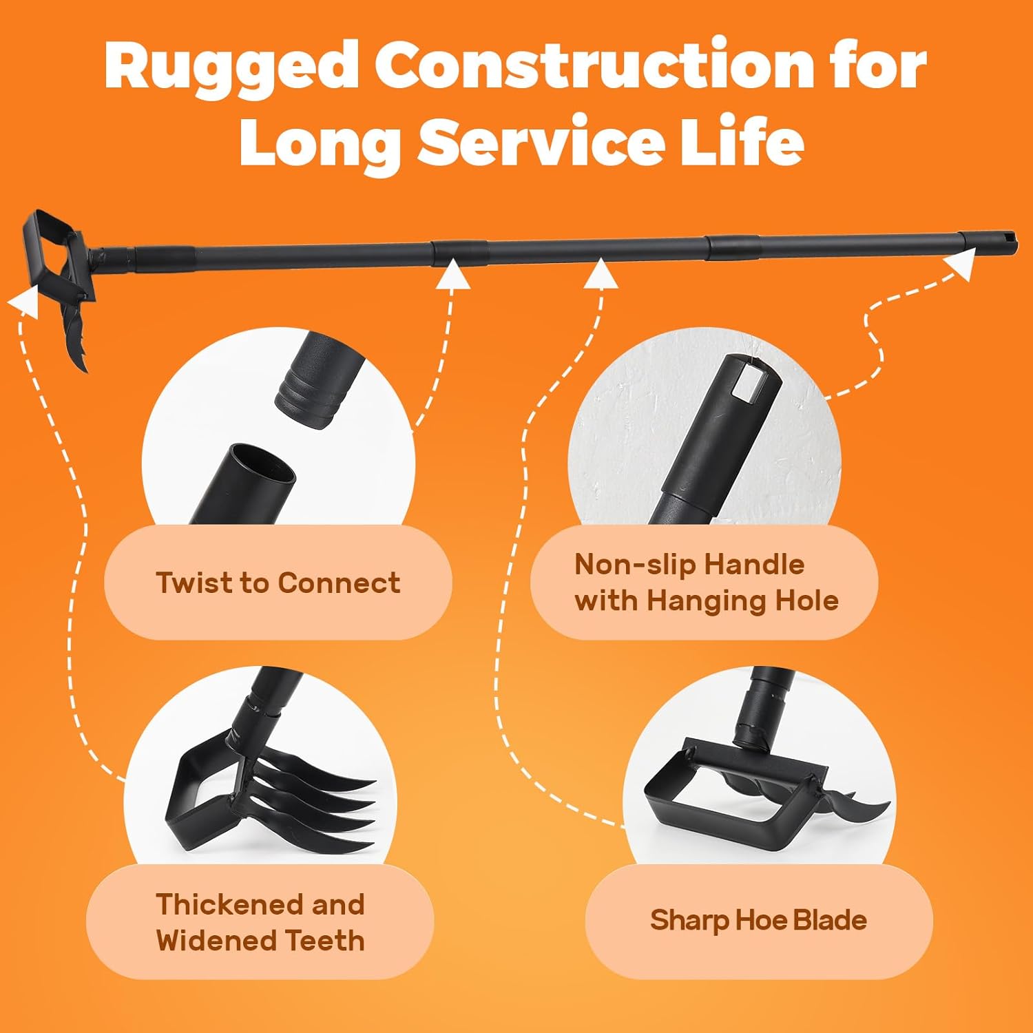 - Multi-functional Garden Hoe: Ideal for ditching, seeding, and loosening soil, this versatile garden hoe adapts to various gardening needs, making it a must-have addition to your toolkit.