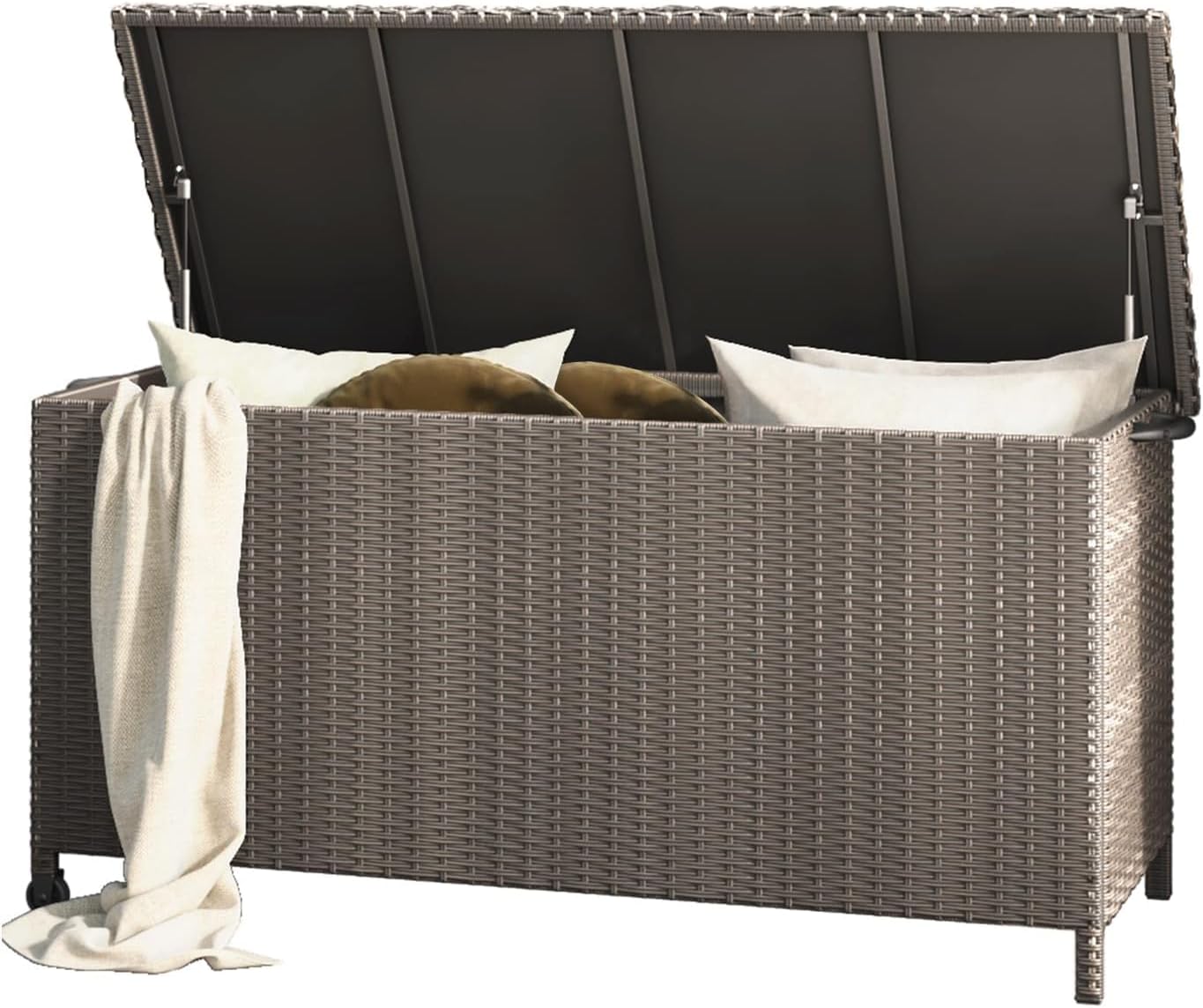 - WEATHER RESISTANCE: Featuring a long-lasting premium PE brushed wicker with natural-rattan look and recyclable.Powder coated steel frame and a PP board in the cover plate at the top of the outdoor storage box, itβs designed for years of beauty