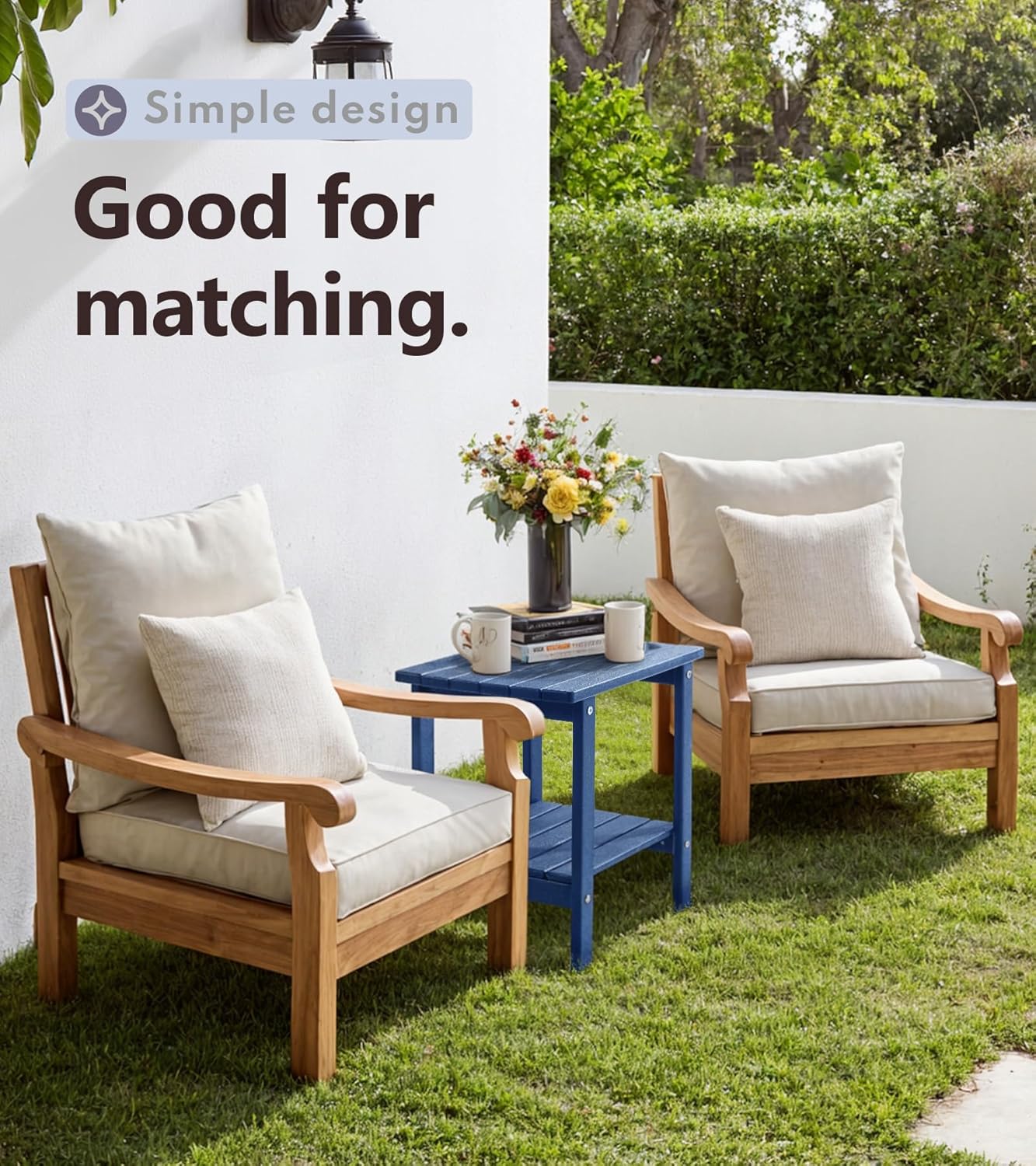 - ăWidely Application for Indoor & OutdoorăChoose from a variety of trendy colors to match your indoor and outdoor space. The outdoor end table is perfect to complement adirondack chairs, patio chairs, and rocking chairs in patio, garden, lawn, pool and balcony. The outdoor small table is also suitable for the living room, bedroom, bathroom and kitchen.