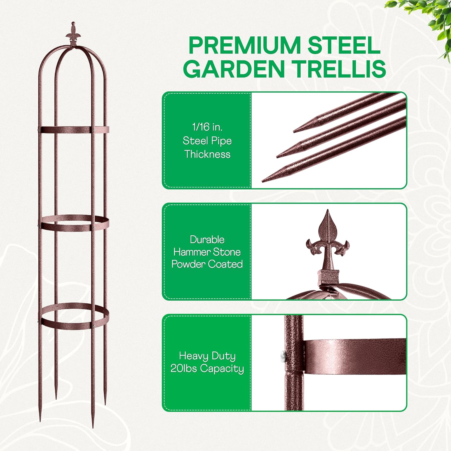 Idzo Trellis for Climbing Plants Outdoor, Garden Trellis Steel, Obelisk Design Hammer Stone Coated, 2025 Bronze Color, Vertical Support for Climbing Plants, Decorative for Outdoor & Indoor Use