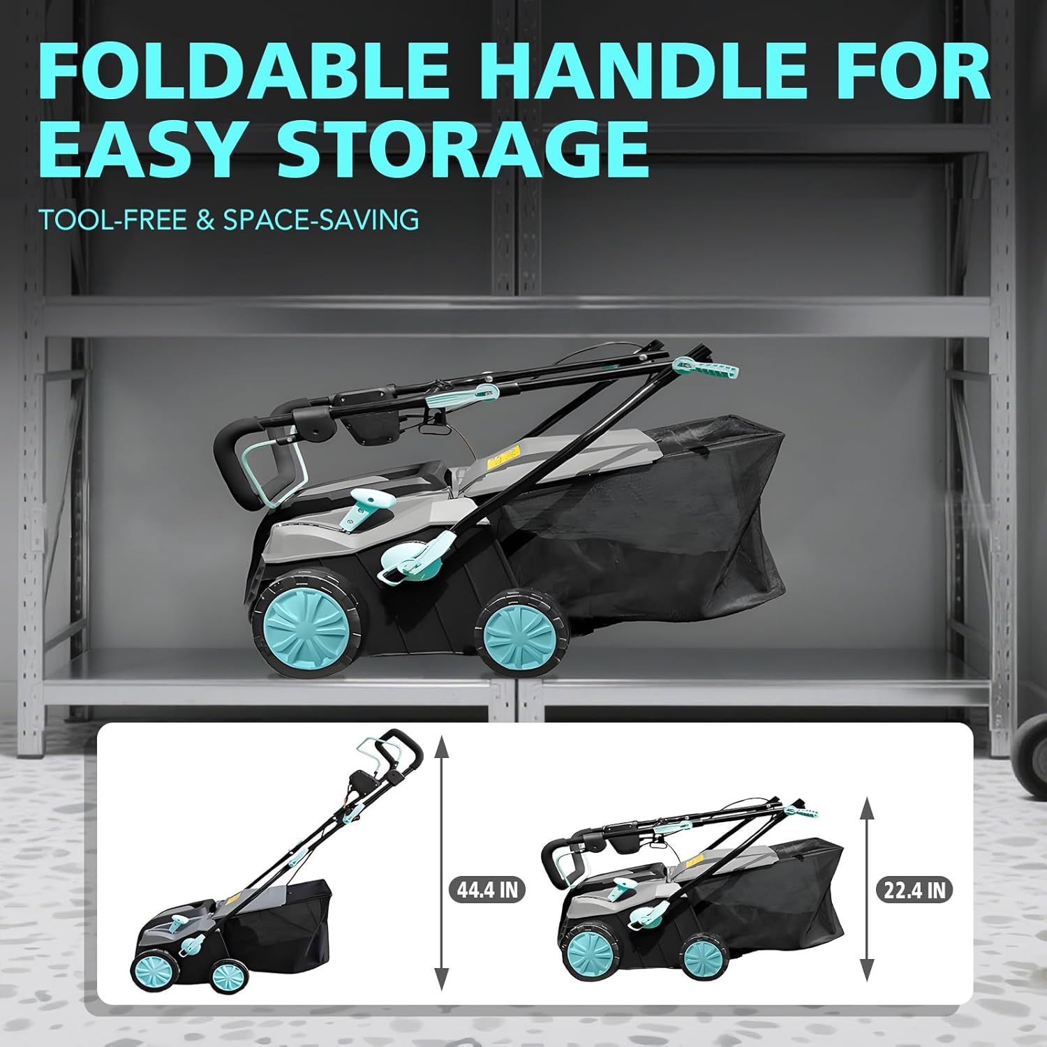 - 【Lightweight, Foldable, Tool-Free Design – Built for Homeowners】 Weighing just 30 lbs, this scarifier and lawn dethatcher is lightweight, easy to maneuver, and stores compactly thanks to its tool-free quick-lock knob and foldable soft-grip handle. It’s an ideal grass aerator and thatching rake for lawns, offering convenience and performance in one package. Use it as a lawn sweeper push tool, electric lawn aerator, or thatcher rake—built for results without hassle.
