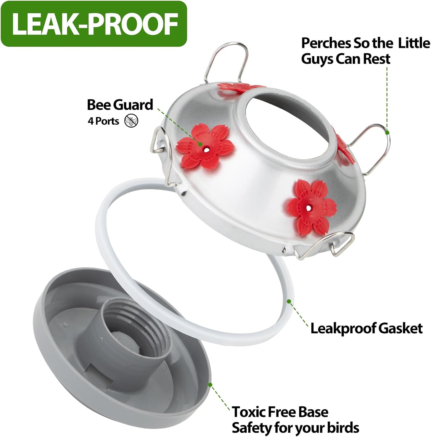- LEAKPROOF FUNCTION: Built-in durable gasket, unique design makes base connection proper and seamless, even when the feeder is jostled by wind or birds landing on it
