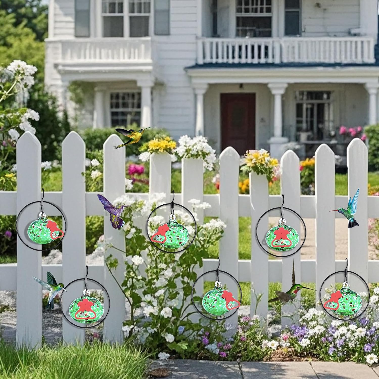 - 【Attract more hummingbirds】 Flexible modular combination feeder provides 6 feeding ports.Independent detachable hooks allow free combination and hanging in gardens,backyards, windows,decks, front porches and anywhere hummer birds appear.