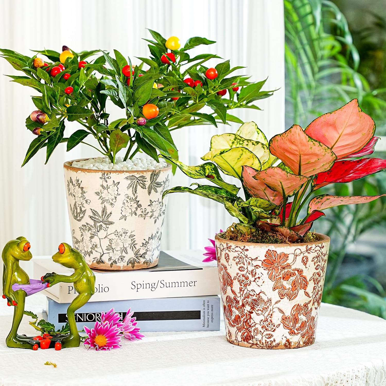 - Vintage Design: These ceramic flower pots feature ice crackle pattern and distressed craftsmanship with exquisite floral designs,that can perfectly match any decor style.