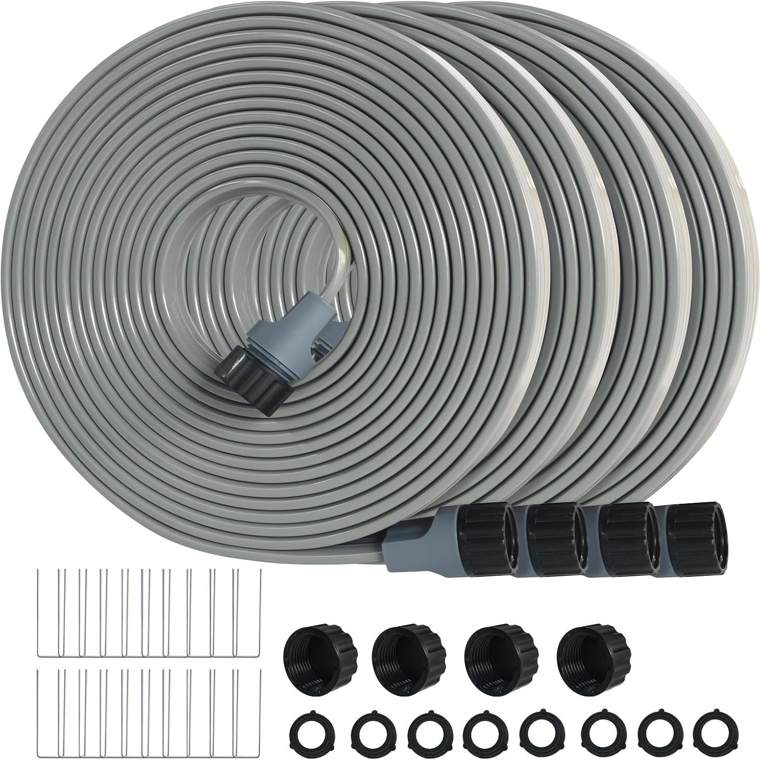 Hopegiver Sprinkler Soaker Hose 50ft 4-Pack Yard, Sprinkler Hose 200 ft for Lawn Water Saving with Stakes, Drip Irrigation Hoses Garden Watering System(Grey,50ft 4-Pack)
