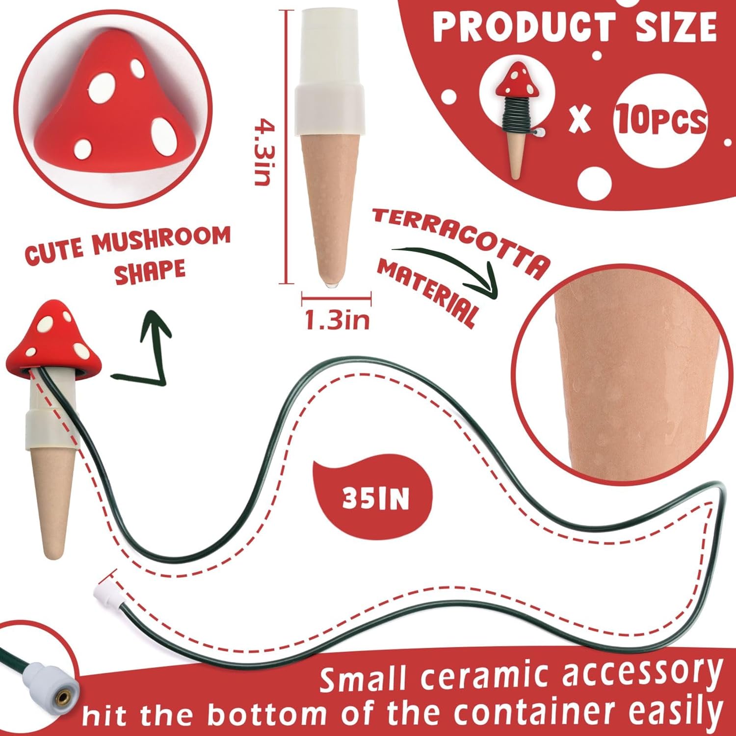 - 🌱GREAT QUALITY: The cone of this product is made of clay,ensures it can saturate with water and evenly drip into the soil. The ceramic material make sure it dispenses the water slowly and accurately according to the needs of the plants. Please contact us if you have any issues.
