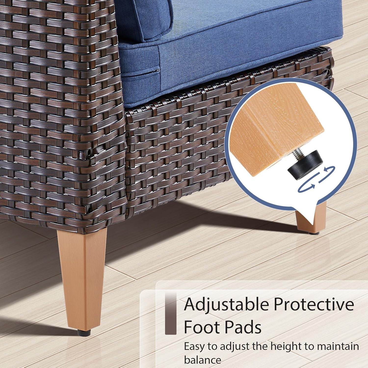 - Durable Sturdy Construction:All made with anti-rust powder-coated metal frame and high-quality Handwoven PE wicker which makes this patio furniture set resistant to UV and all weather,The upgrated trapezoidal feet provides strong support,with the non-slip plug, it will help you to avoid scratches on the floor when you move the furniture around.