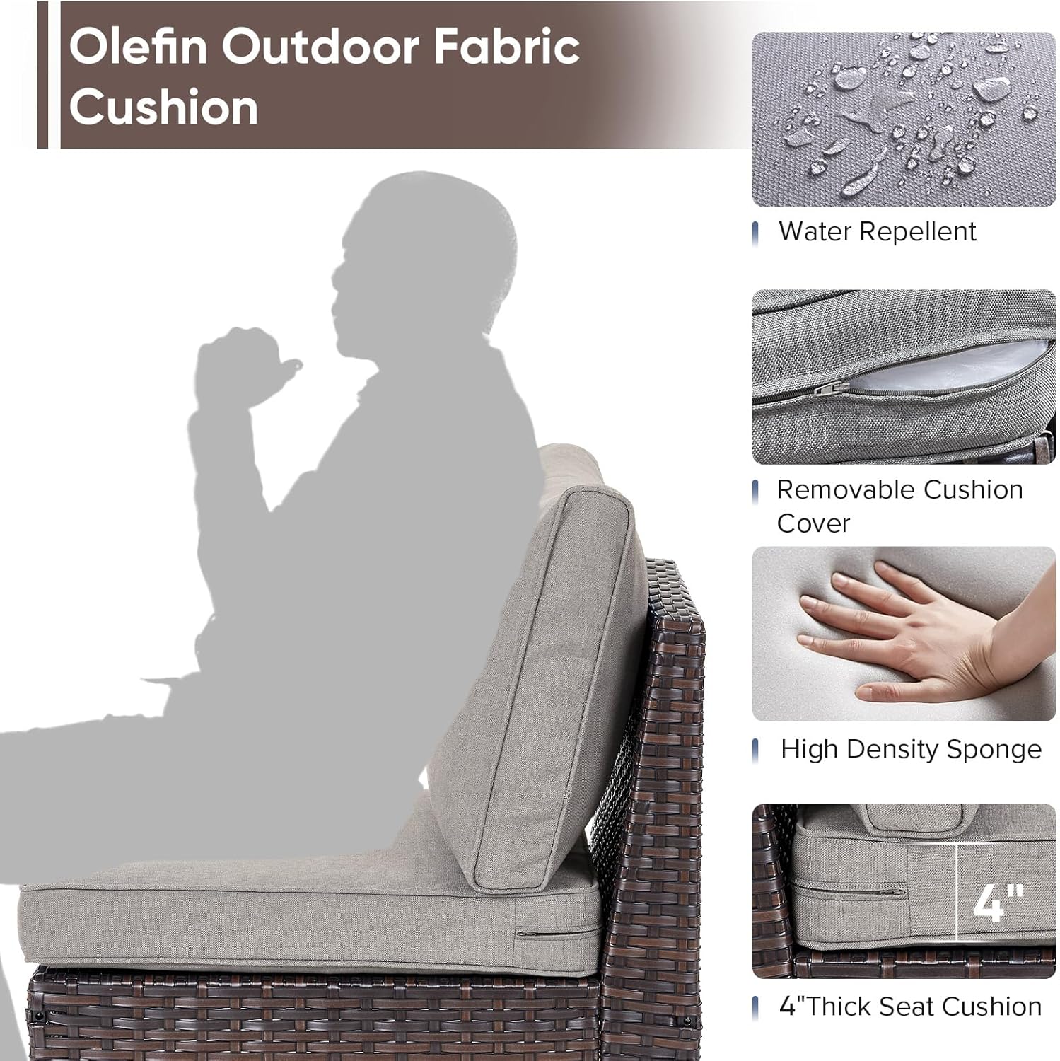 - Free Combination:Our patio furniture set includes individual chairs, corner chairs, and curved double seat sofas and ottomans. you can freely combine these products to meet your needs and space size.Any quality problem please contact us for replacement.