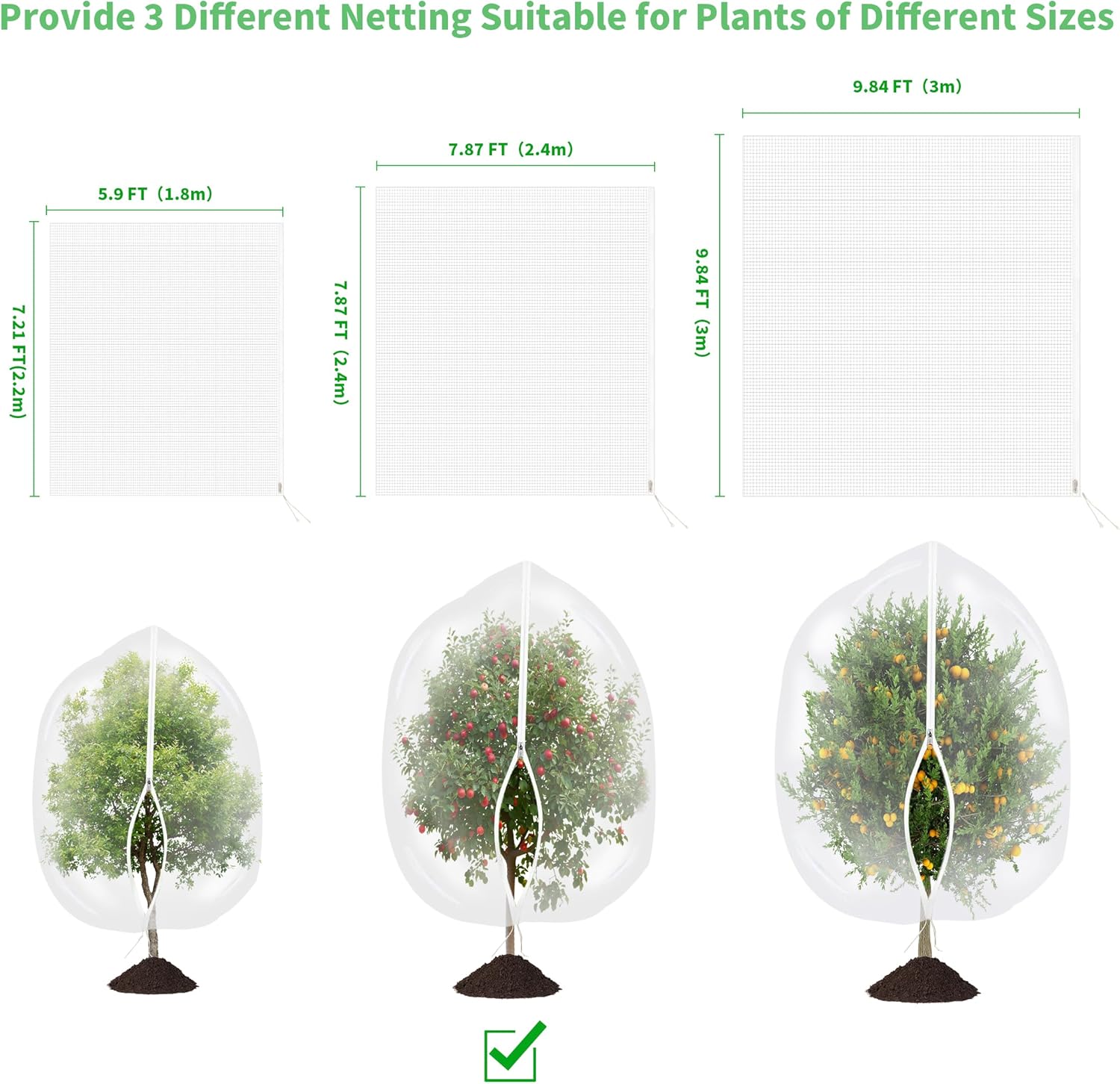 - Protect Your Harvest: Worry no more about wasted fruit with our bird netting! Effortlessly safeguard blueberry bushes, grapes, tomatoes, lemons, strawberries, oranges, and other fruit trees, vegetables, and shrubs from pesky insect, cicada, and bird damage.