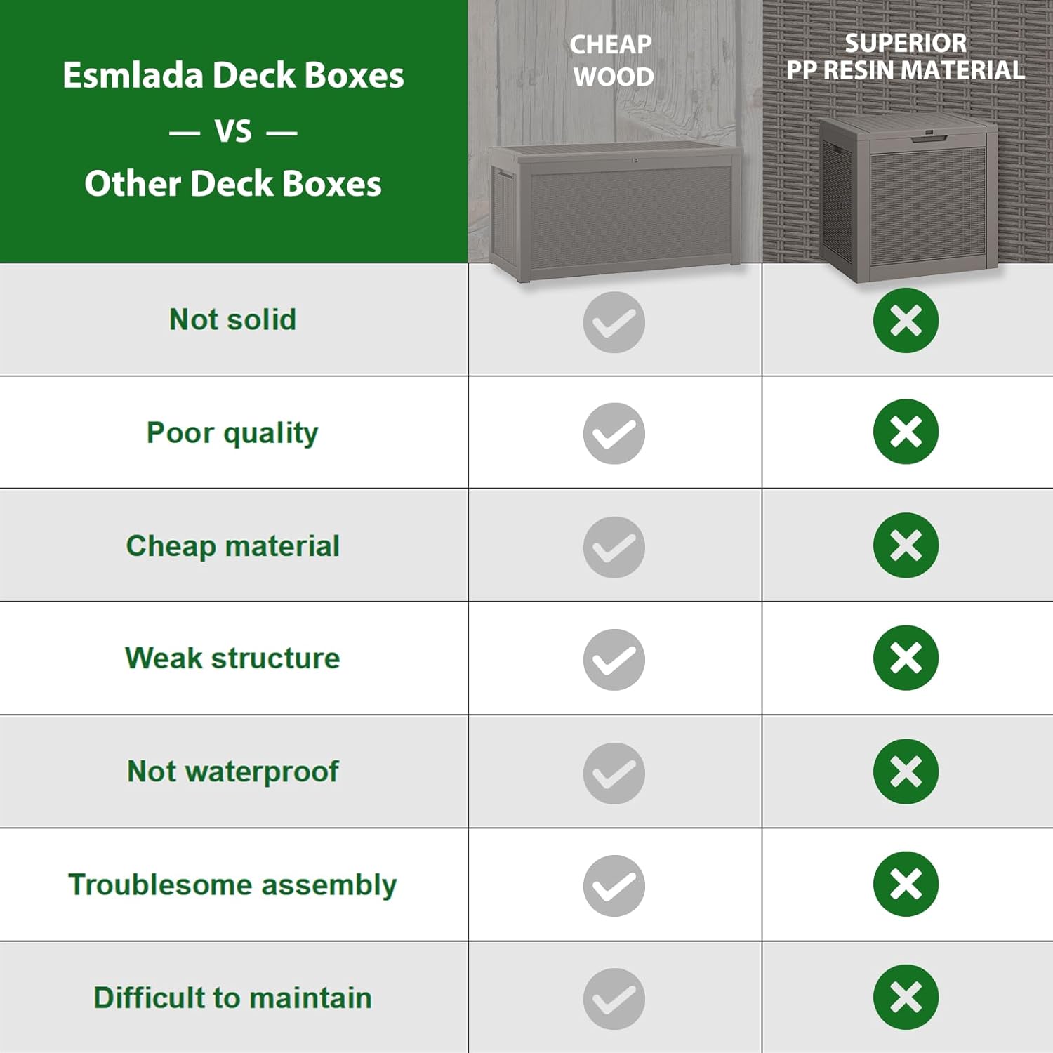 - 🎅【WIDE USE】This deck boxes is suitable for indoor and outdoor, can be package delivery box, deck storage box, garden box, storage bin, patio storage box, hose storage, even can be used as a storage bench, side table or patio table.