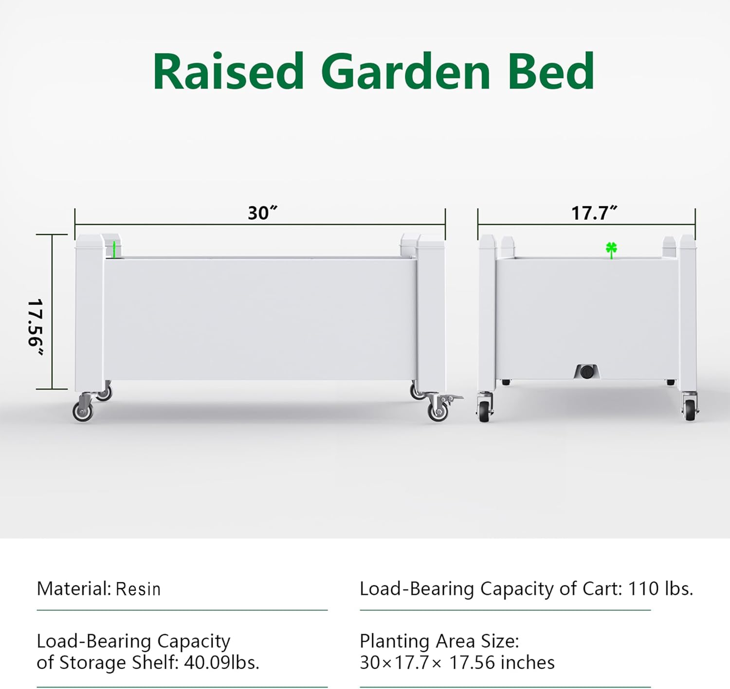 Horticulture Garden Bed with Legs, Divisible Resin Planter Box for Backyard, Patio, Balcony, with 4 Legs, 4 Swivel Lockable Wheels(Ashen,30.04 * 17.72 * 17.56)