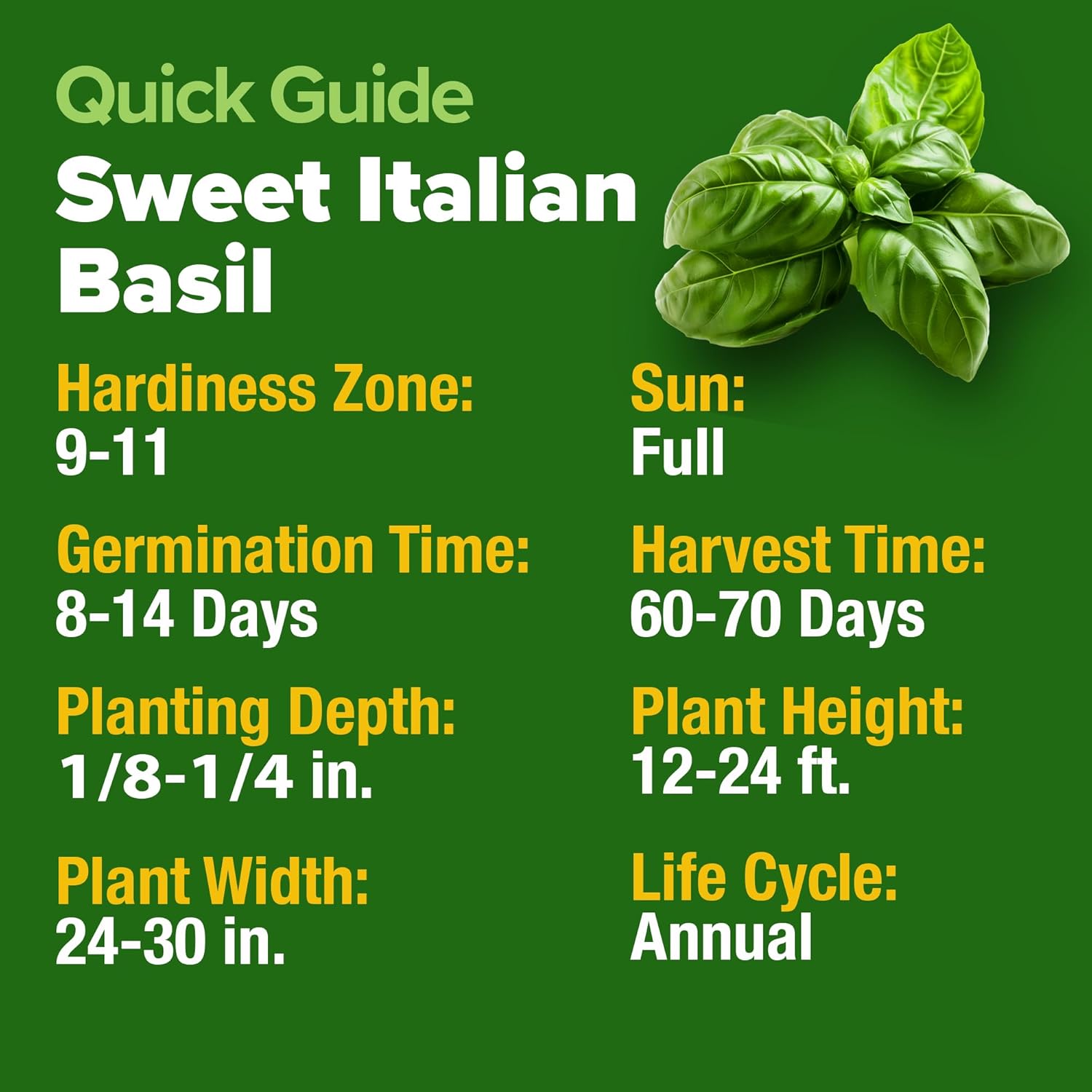 - LOW MAINTENANCE AND HIGH YIELDS – Sweet Italian Large Leaf basil is a hardy, resilient basil plant that requires minimal care once established. With regular watering and proper sunlight, these herb seeds grow up to 24 inches tall, producing large, flavorful leaves with each harvest. Perfect for those looking to grow basil seeds for planting indoors or outdoors with minimal upkeep, this basil delivers fresh herbs without the hassle of constant gardening.