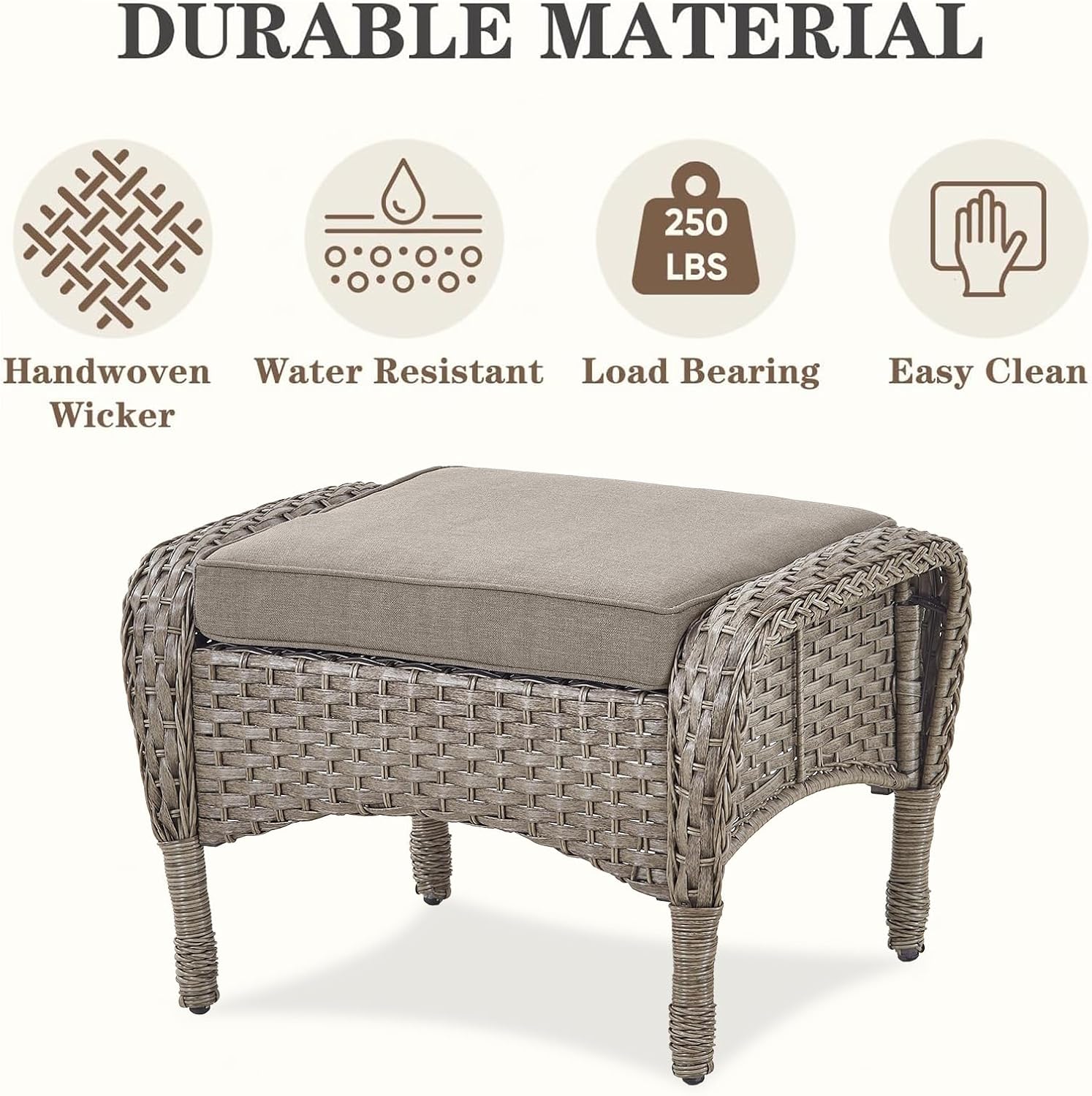 - Versatile & Stylish Design:The coordinated pieces of this outdoor patio conversation set allow flexible layouts to suit your space. Use the ottomans as footrests or additional seating, and arrange the side tables for easy access to drinks and snacks. The sleek, modern aesthetic blends seamlessly into any outdoor decor.