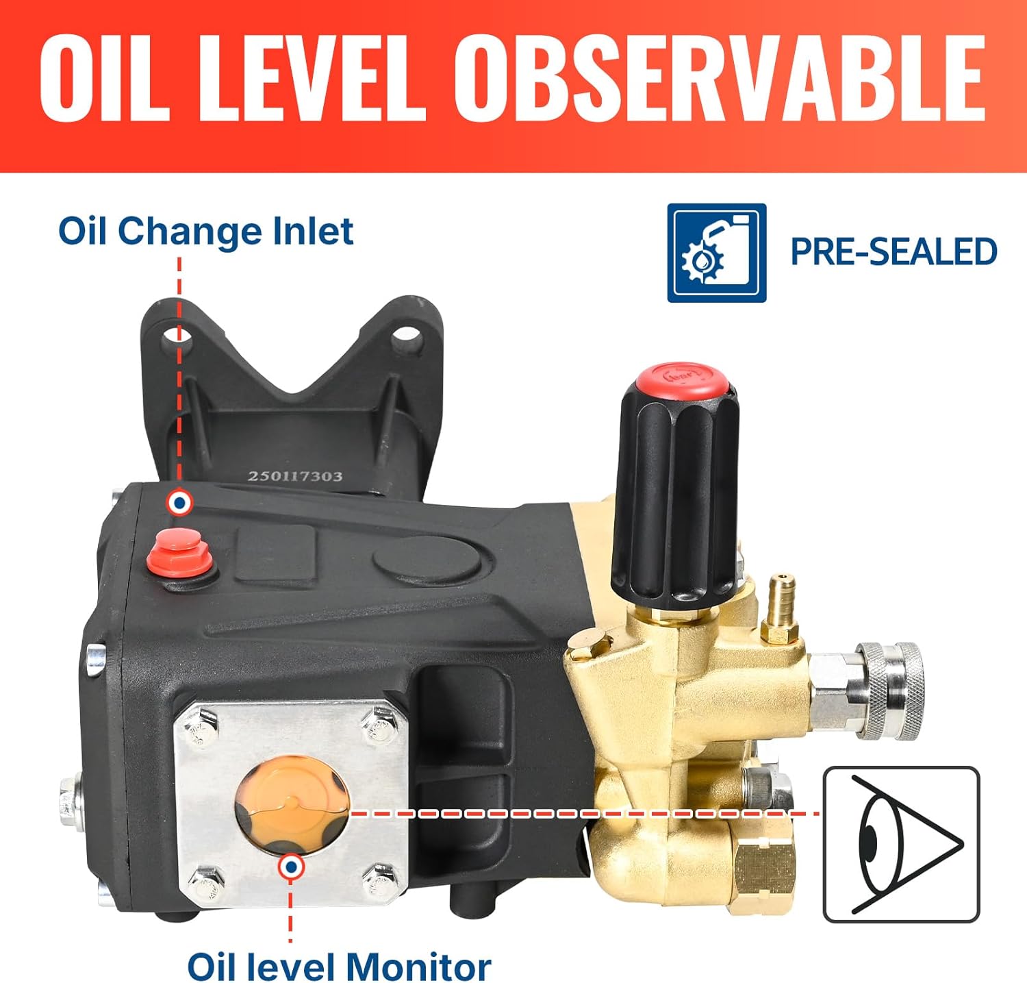 - [Visual Oil Level Monitor] Our pump has a built-in clear visual oil level monitoring window. You can observe the status and oil level of the lubricating oil at any time and promptly determine whether refueling is needed, ensuring that the equipment is always in the best operating state and avoiding damage caused by lack of oil.