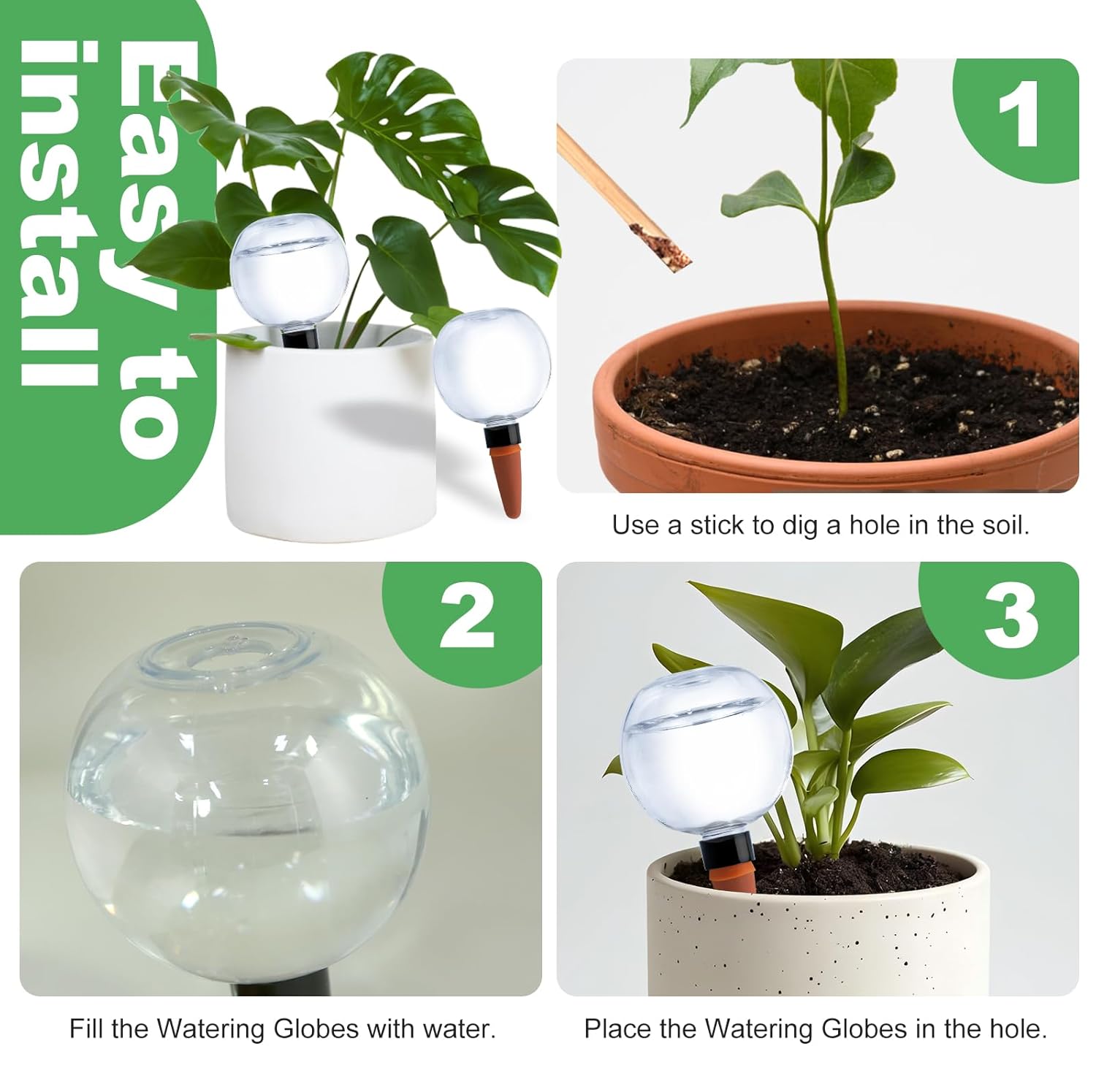 - Efficient Solution:An efficient solution for busy plant lovers, you don't need to remember to water your plants when you are traveling, or busy at work, just check and refill the watering globes regularly, the large capacity storage can last for a week of watering work.