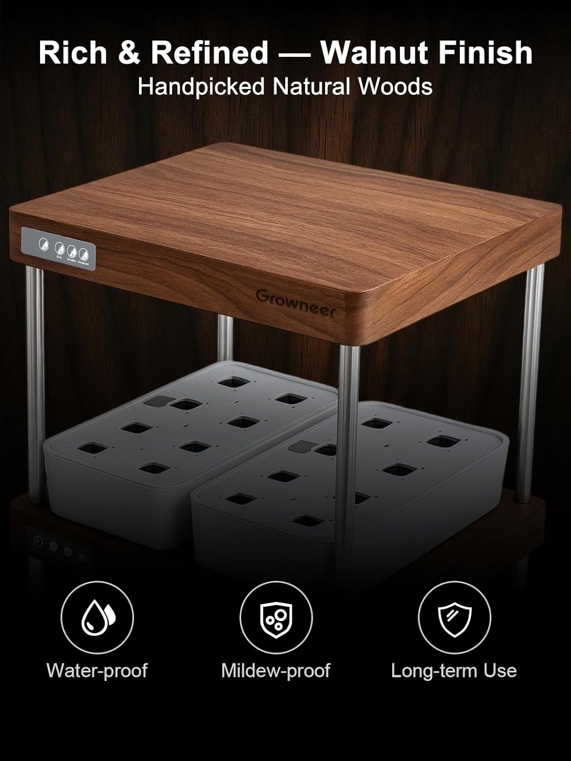 GROWNEER HydroEasy1.0 Hydroponics Growing System Kit, Beginner-Friendly Indoor Garden for Vegetable Fruit Herb, Walnut Design, Perfect Gift Idea, Full-Spectrum LED Lights for Maximum Growth