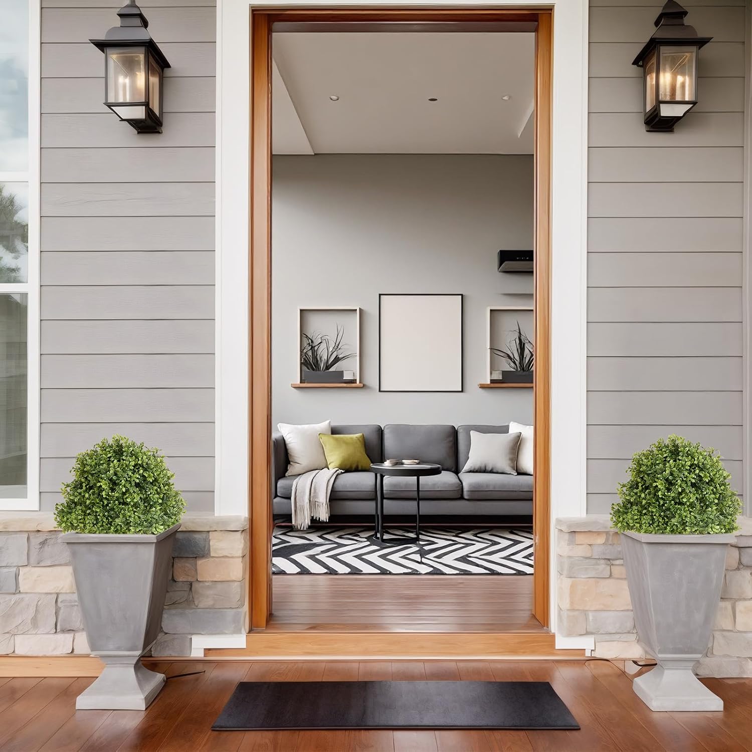 - Lifelike & Low-Maintenance - These faux boxwood topiary trees look so realistic, you'd swear they're real. Crafted from high-quality materials, they offer the perfect combination of beauty and durability. These artificial topiary for outdoors stay green and full without any of the hassle—no watering, pruning, or maintenance needed.