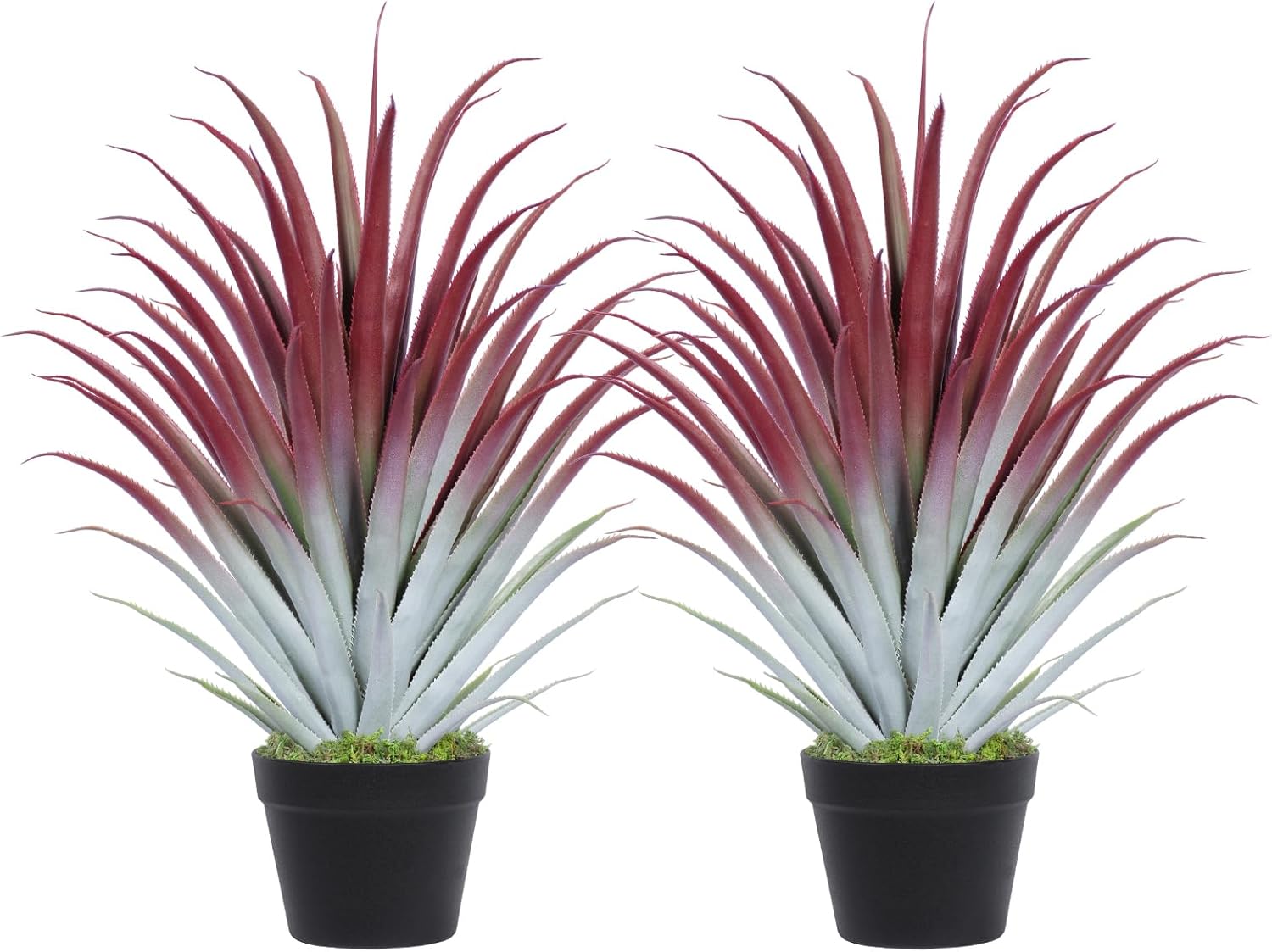 2ft Fake Spiked Agave Plant - Red Artificial Aloe Vera Plant 26 Inch - Tall Large Faux Floor Plants Perfect for Porch Door Step Home Office Patio Indoor Outdoor Decor (2 Pack)
