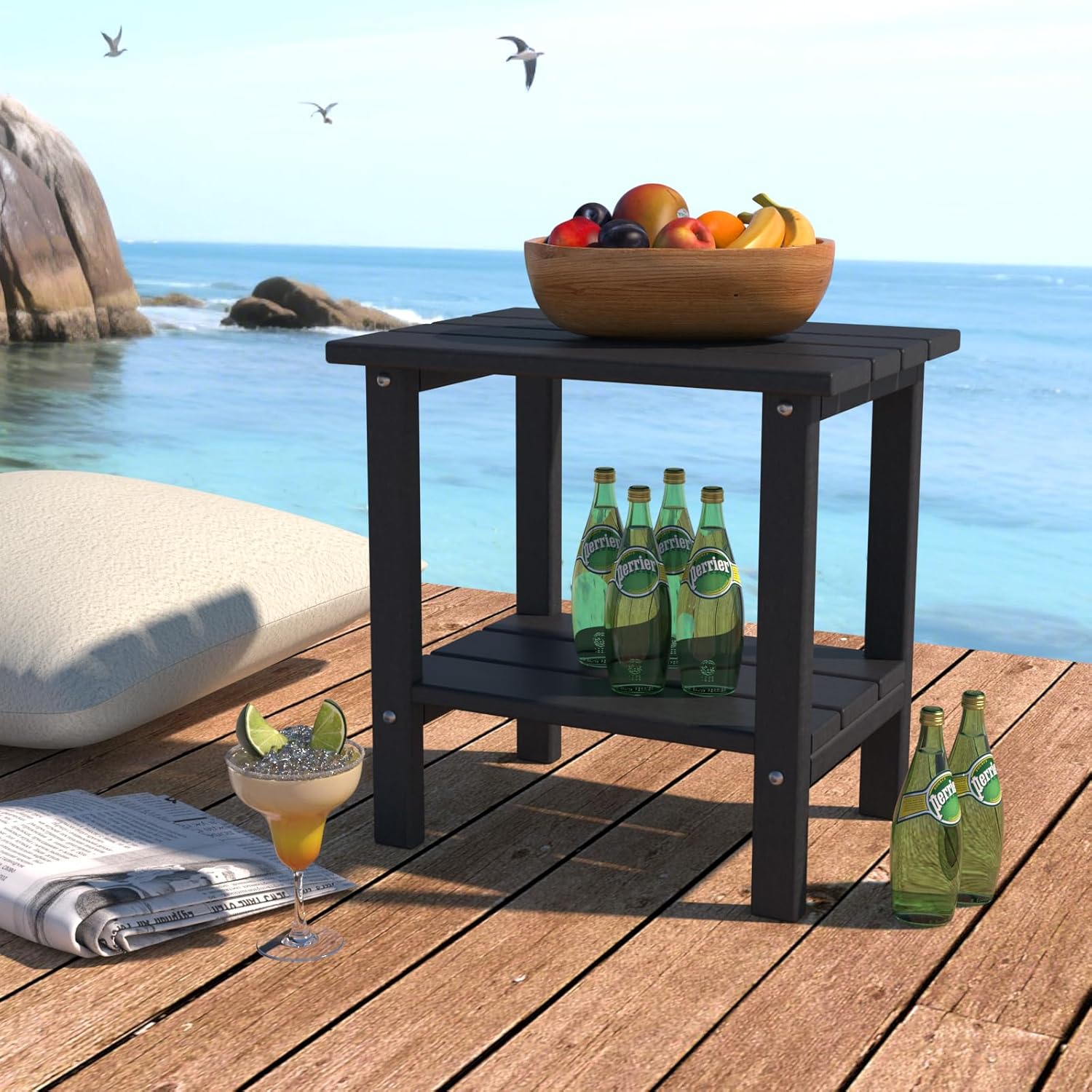 Double Adirondack Outdoor Side Table, Weather-Resistant Patio End Table for Backyard, Pool & Porch, Durable & Stylish Patio Side Table, Black