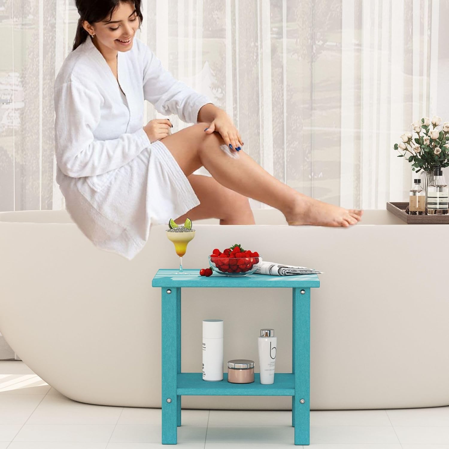- Widely Application for Indoor & Outdoor: Choose from a variety of trendy colors to match your indoor and outdoor space. The outdoor end table is perfect to complement adirondack chairs, patio chairs, and rocking chairs in patio, garden, lawn, pool and balcony. The outdoor small table is also suitable for the living room, bedroom, bathroom and kitchen.