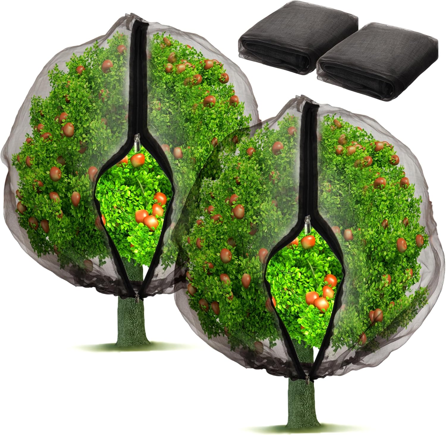 2 Pack Fruit Tree Netting Bags with Zipper and Drawstring, Ultra Fine Mesh Garden Netting Plant Cover, Bird Netting for Blueberry Bushes, Fruit Vegetable Trees, Flowers (Black, 10 x 10 ft)