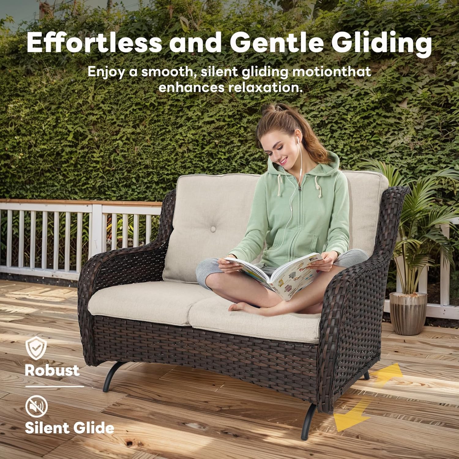 - Smooth Gliding Motion for Relaxation:Experience the ultimate comfort with Belord outdoor glider loveseat, featuring a smooth and noiseless gliding mechanism. Perfect for unwinding, the patio glider loveseat provides a gentle back-and-forth motion to enhance relaxation.