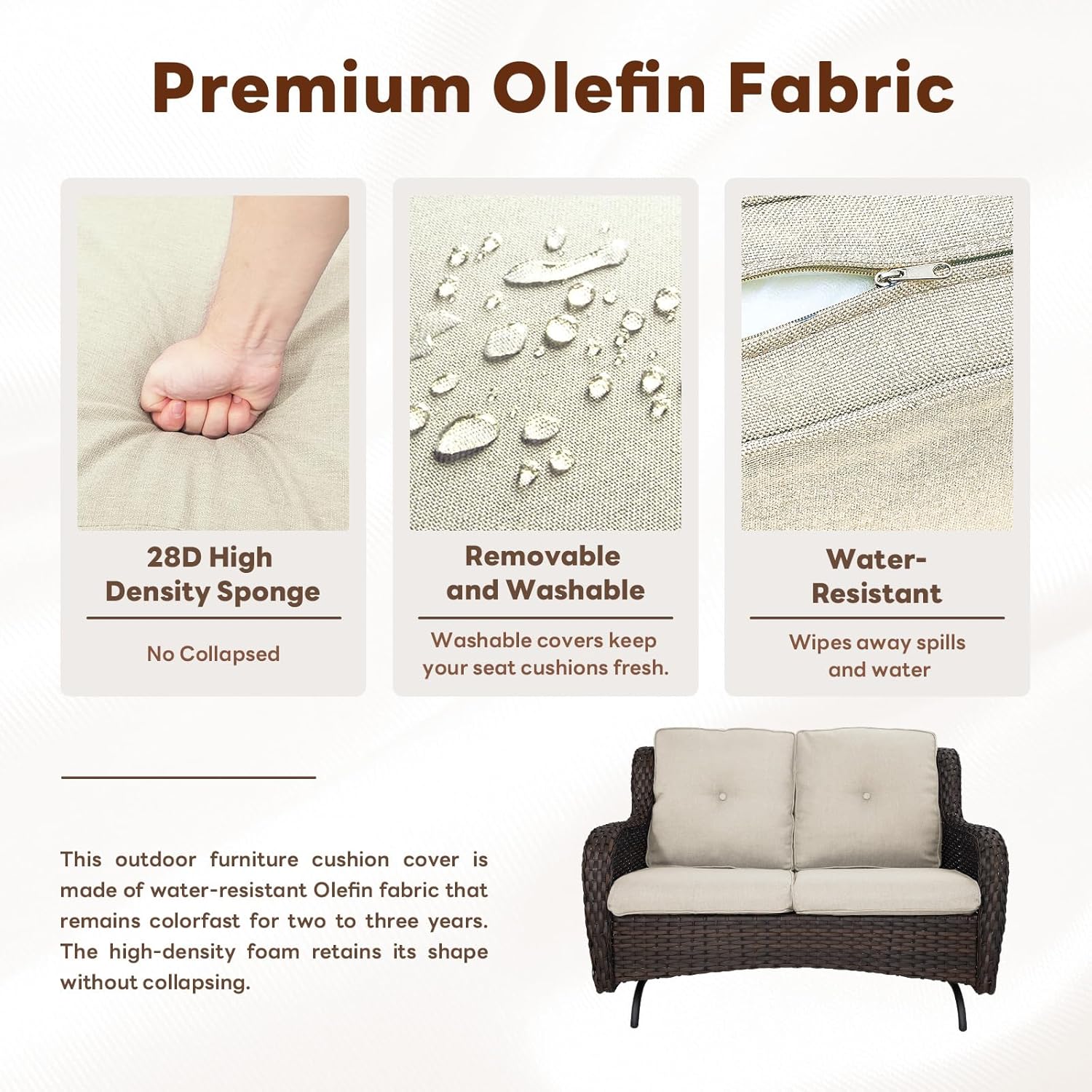 - Stylish Addition to Your Patio Décor:The timeless design of this patio glider loveseat adds a touch of sophistication to any outdoor space. Its neutral tones and wicker texture blend seamlessly with existing outdoor furniture and décor.