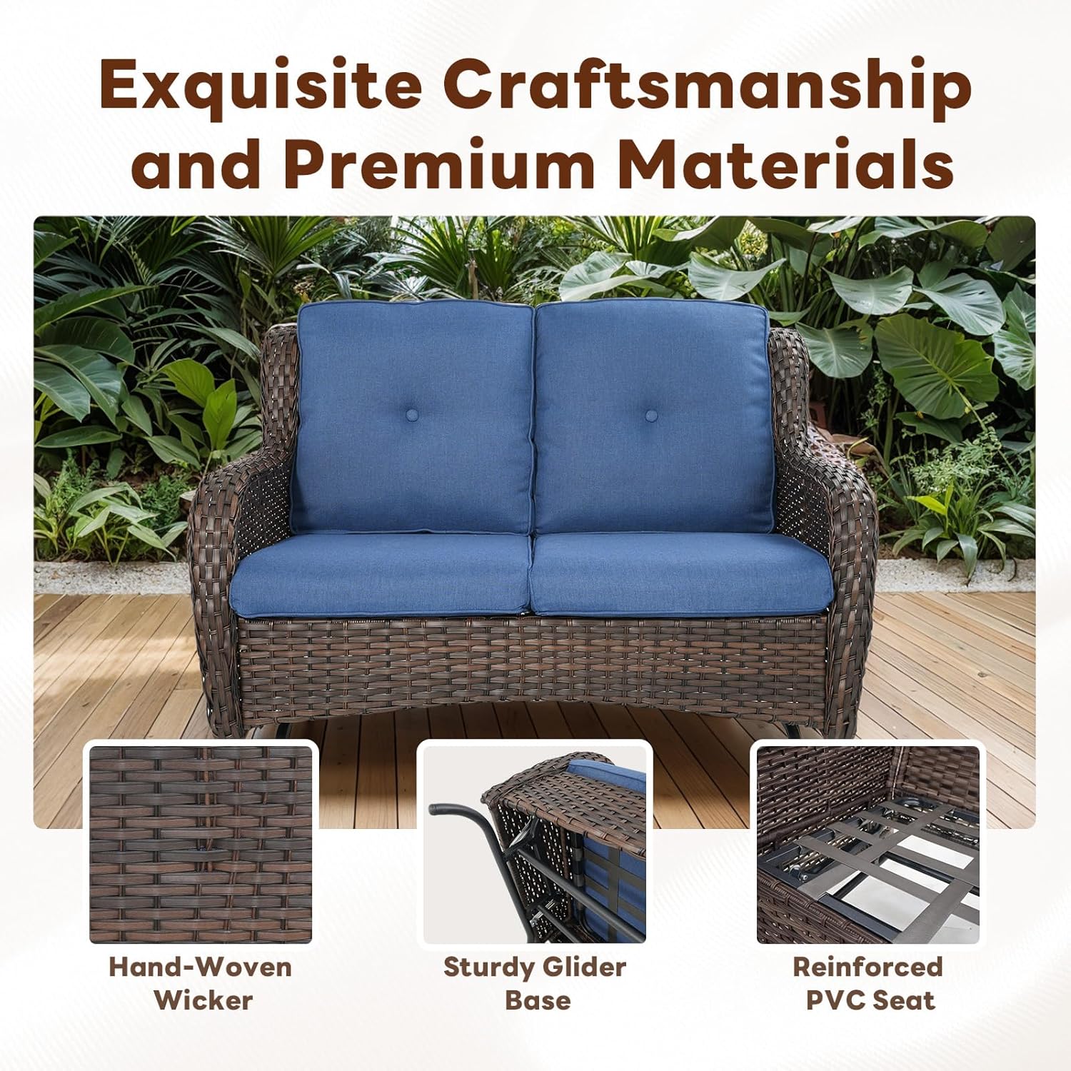 Spacious Outdoor Glider Bench - 500 LBS Weight Capacity Small Loveseat, 2 Seater Patio Gliders Furniture All Weather Wicker Couch with Removable Cushion for Deck Sunroom Balcony Backyard
