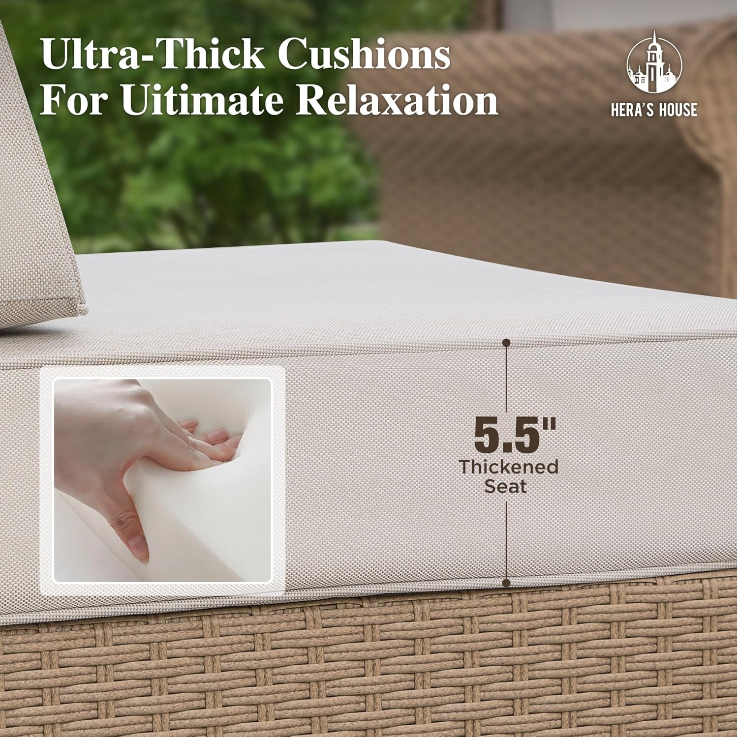 - 【Unbeatable Level of Comfort】This modern design patio sofa features a unique trapezoidal design for the sponge cushion and backrest. The 5.5" thick cushions and high-quality seats provide an excellent seating experience and enhanced comfort levels.